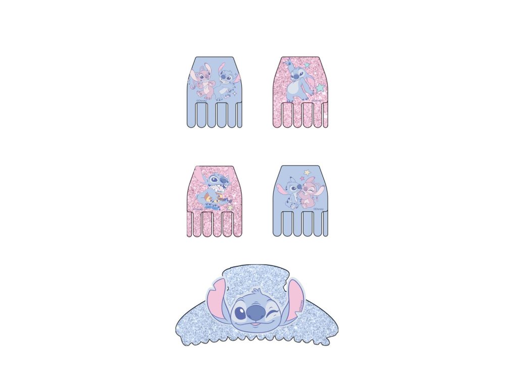Sada skřipců do vlasů - růžové a modré, Stitch