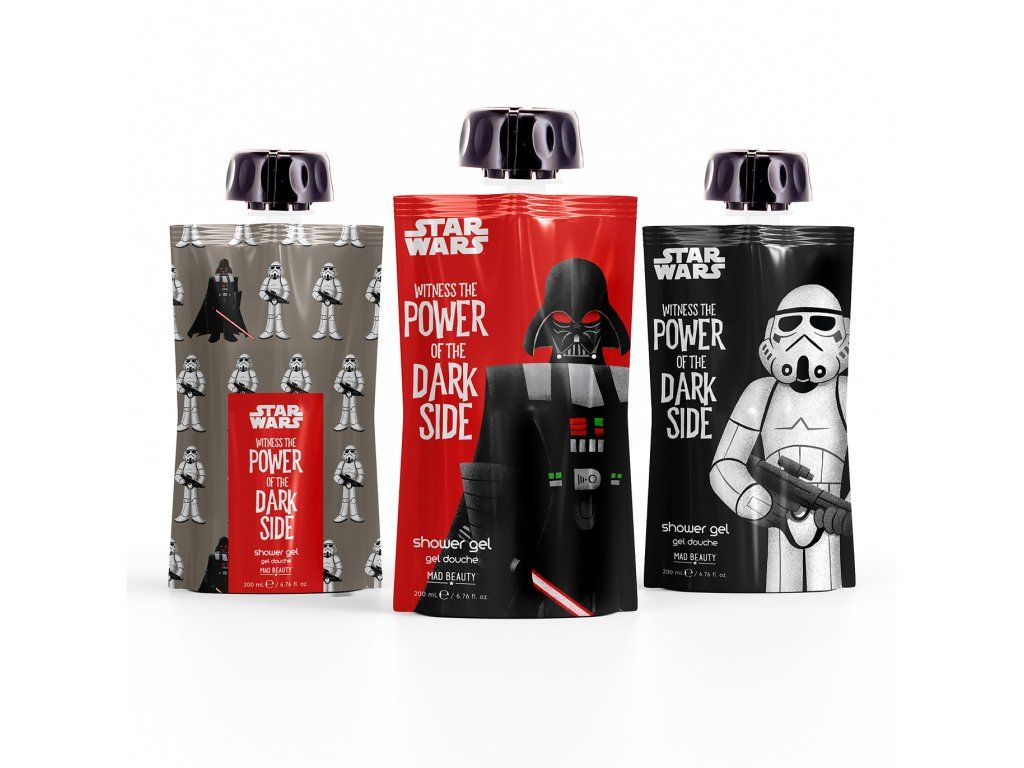 Načerpejte sílu přímo z temné strany s tímto triem povzbuzujících sprchových gelů! Kompaktní fóliové sáčky s motivy Darth Vadera a Stormtrooperů jsou jako stvořené na cesty i do fitka. Vyberte si vůni podle nálady: hřejivou ambru s ženšenem pro regeneraci, dřevitý cedr s limetkou pro uzemnění nebo svěží citron s mandarinkou pro okamžitý příval energie.