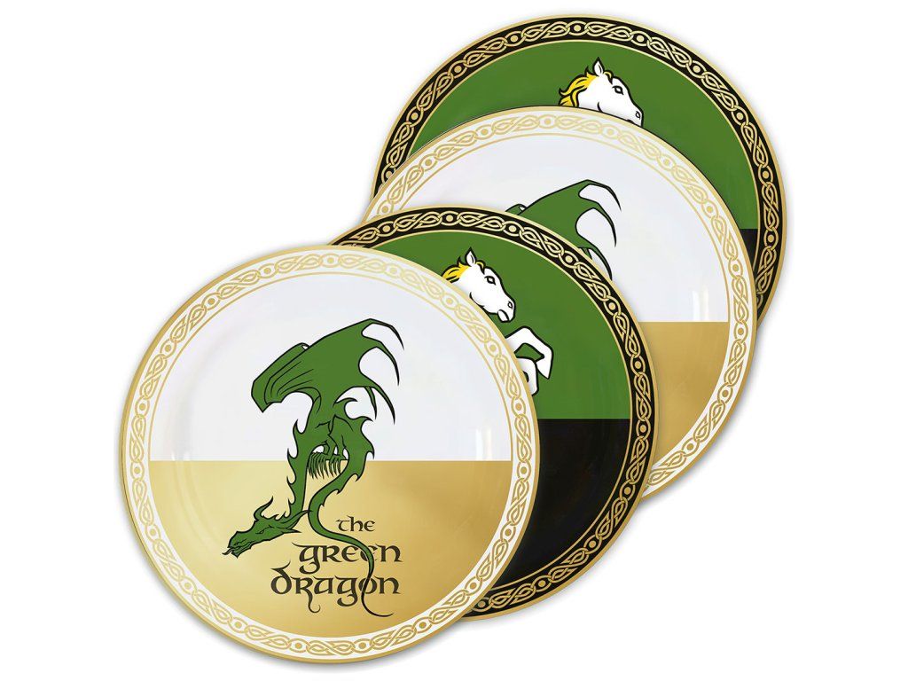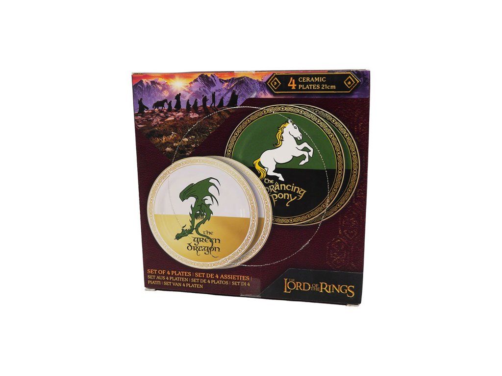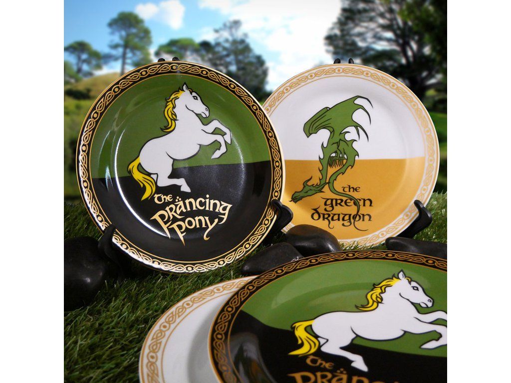 Pro fanoušky Středozemě je tato sada čtyř keramických talířů skvělým doplňkem. Inspirací jsou legendární hospody U Skákavého poníka v Hůrce a U Zeleného draka v Hobitíně, oblíbená místa hobitů i poutníků. Talíře o průměru 21 cm jsou vyrobeny z kvalitní glazované keramiky, vhodné do myčky i mikrovlnky.
