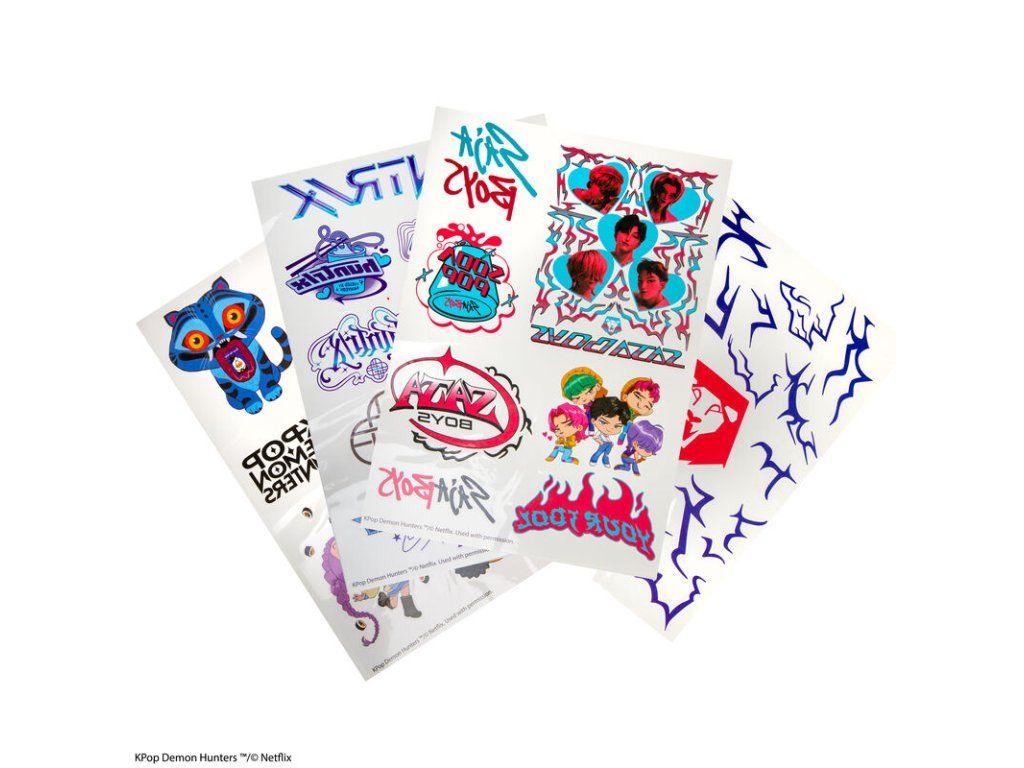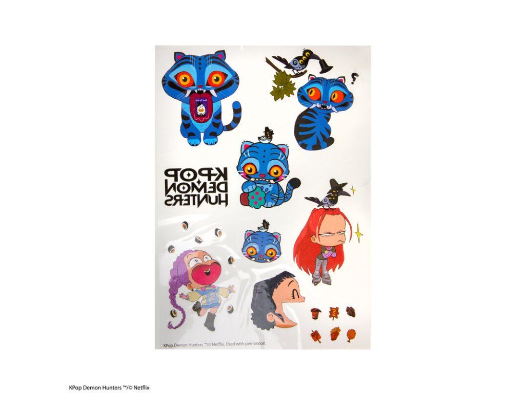 Tato sada tetování z japonského K-pop anime filmu Demon Hunters je skvělou volbou pro chlapce i dívky. Balení obsahuje čtyři archy plné tetování různých velikostí, každé má zcela jiný tvar a velikost. Mezi návrhy najdete Derpy, Sussie, dívky Huntrix, Saja Boys a mnoho dalších. Každé tetování se vyznačuje zářivými barvami a precizními detaily.Doplňkové parametry