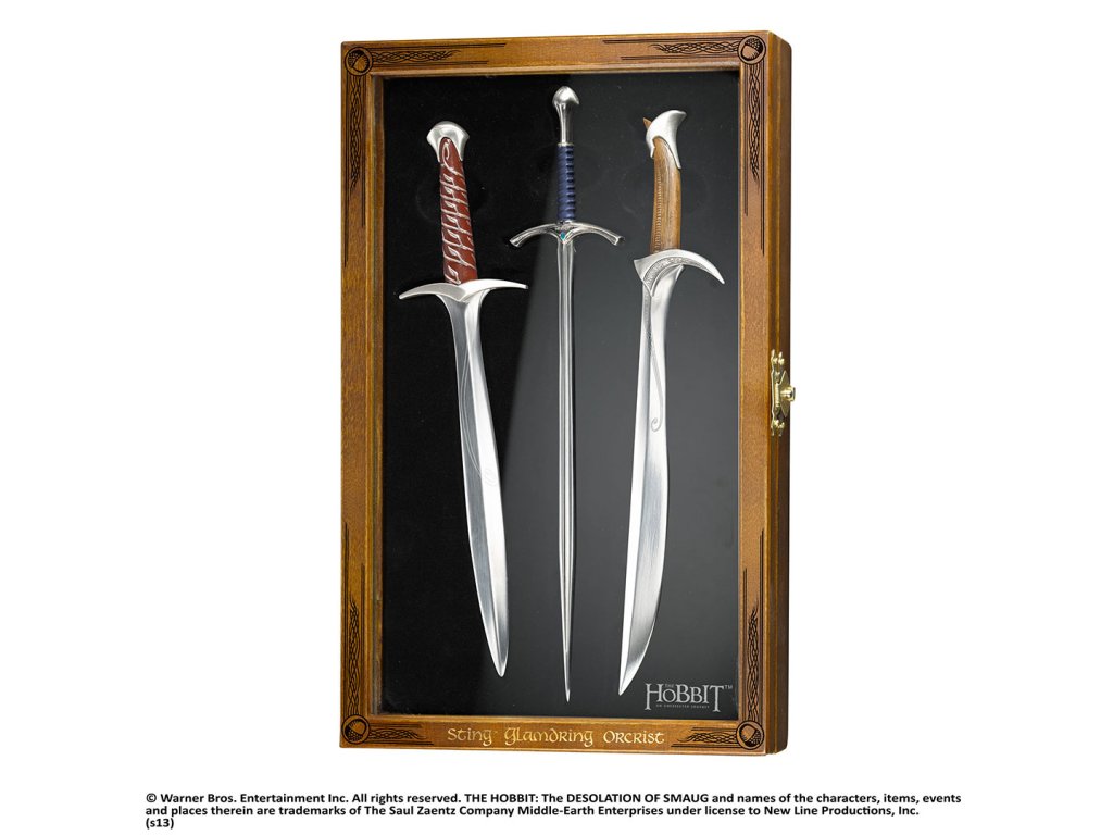 Sada tří elfských čepelí nalezených v trollím pokladu – Žihadla, Glamdringu a Orkristu. Jedná se o prvotřídní nože na dopisy v dřevěné sběratelské krabičce s logem Hobita.Doplňkové parametry