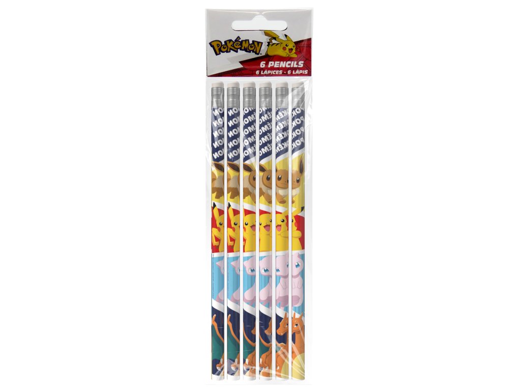 Sada 6 kusů klasických dřevěných tužek s motivem nejoblíbenějších Pokémonů - Eevee, Pikachu, Mew a Charizard. Malý dárek pro velkou radost! Jde o pěknou sadu 6 tužek s gumou vhodnou do školy i doma pro radostDoplňkové parametry