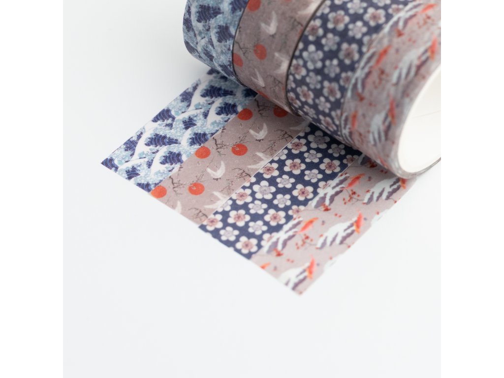 Sada 4 Washi pásek se vzory inspirovanými Velkou vlnou u Kanagawy. Každá páska měří 15 mm na šířku a 3 m na délku, vyrobena z lepicího papíru o tloušťce 0,08 mm.Doplňkové parametry