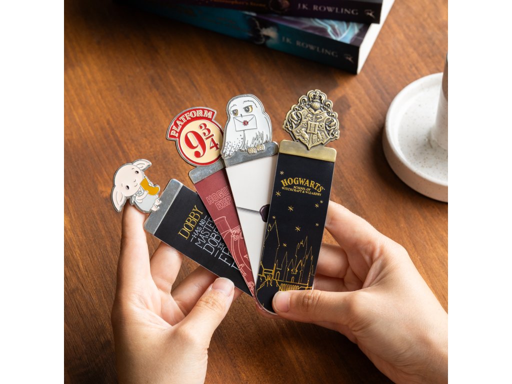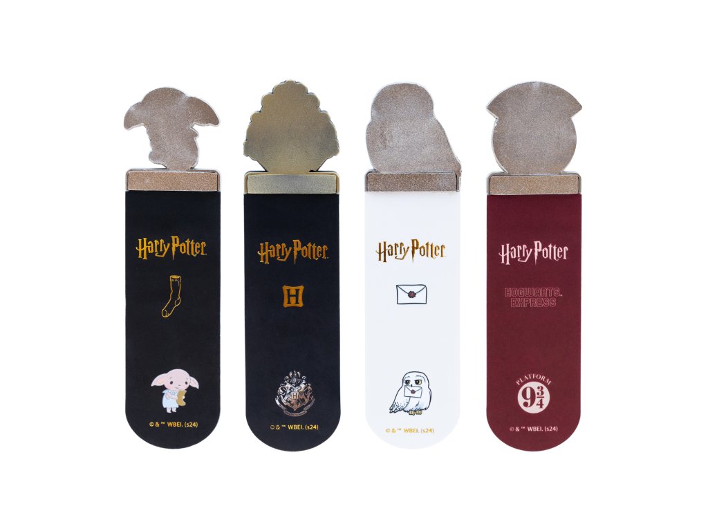 Sada 4 lehkých a ohebných záložek z PVC. Nahoře jsou zdobeny reliéfním motivem ze slitiny zinku, který zůstává viditelný i po vložení záložky do knihy.Doplňkové parametry