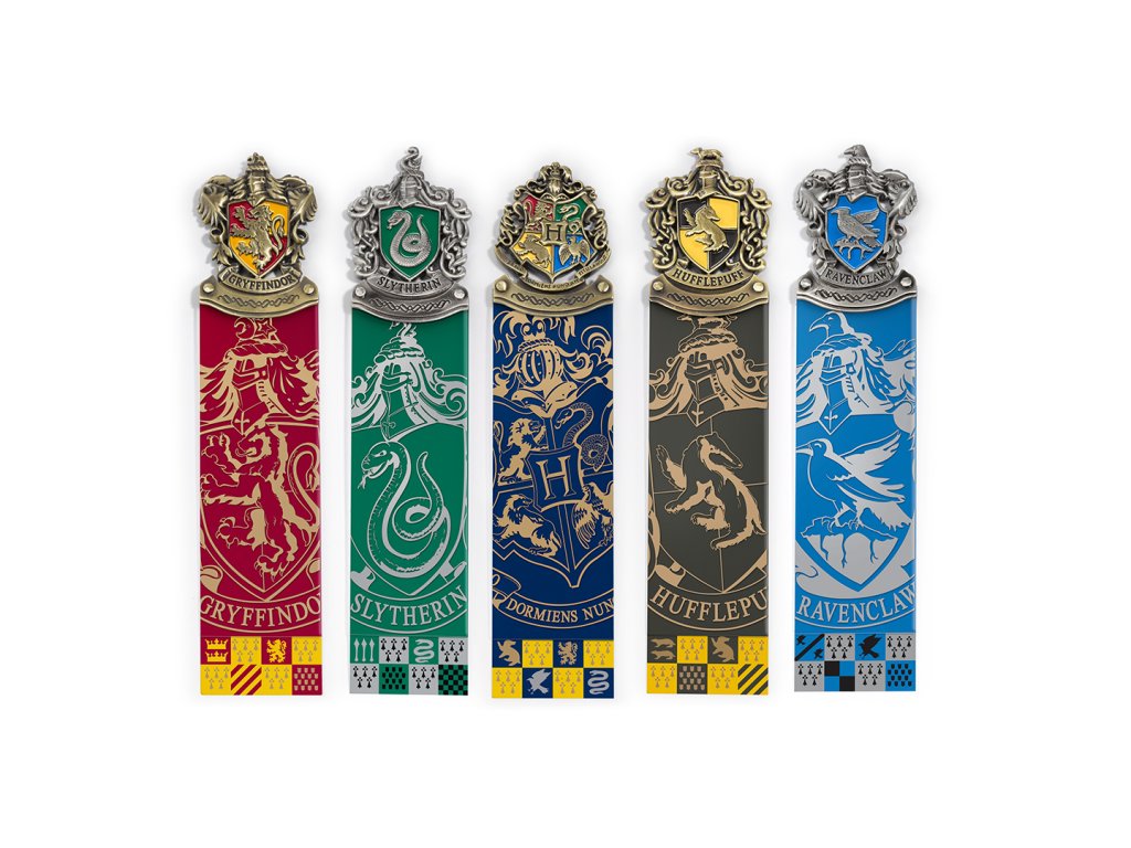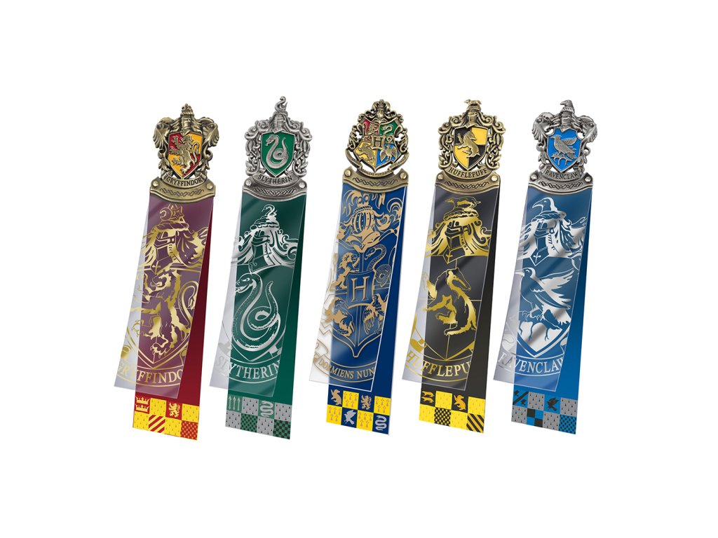 Udržujte si místo ve svých knihách stylově s touto krásně zpracovanou sadou záložek s bradavickými erby. Každá záložka je navržena v ikonických barvách kolejí a školy a obsahuje odolnou plastovou klapku, která bezpečně sedí přes horní okraj stránky. Na vrchu je umístěn detailní kovový, ručně smaltovaný erb, který oslavuje kouzlo Bradavic a dělá čtení ještě kouzelnějším.