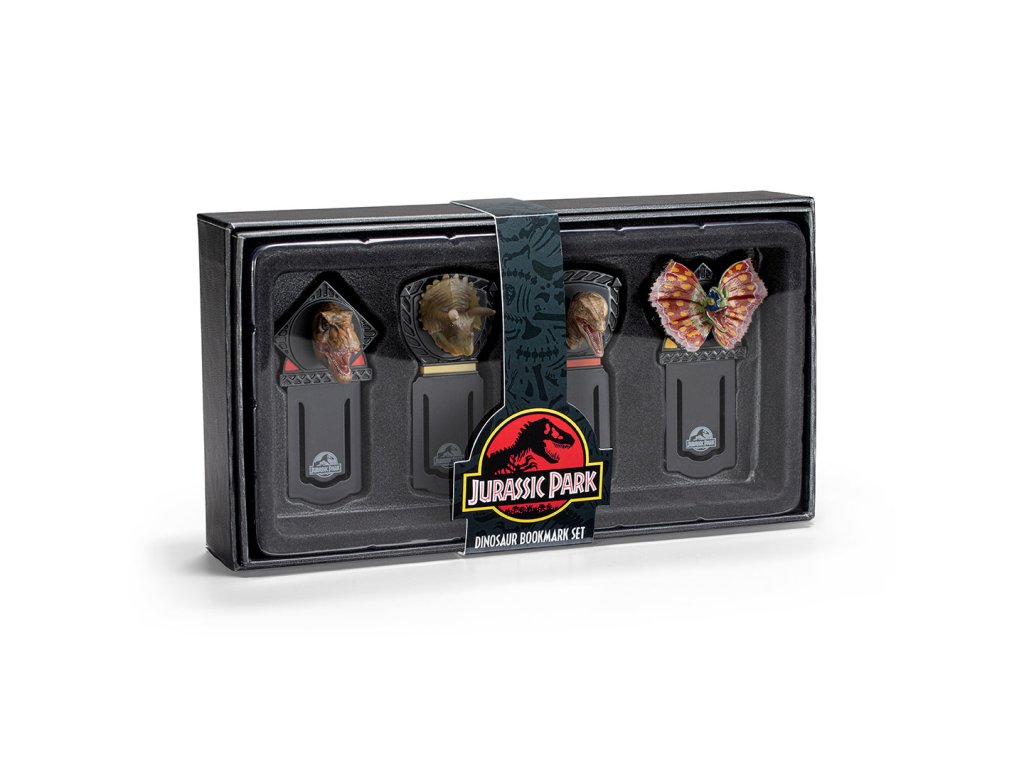 Sada čtyř detailně propracovaných záložek s motivem Jurského parku, doplněných vymodelovanými hlavami Tyrannosaura Rexe, Velociraptora, Dilophosaura a Triceratopse.Doplňkové parametry