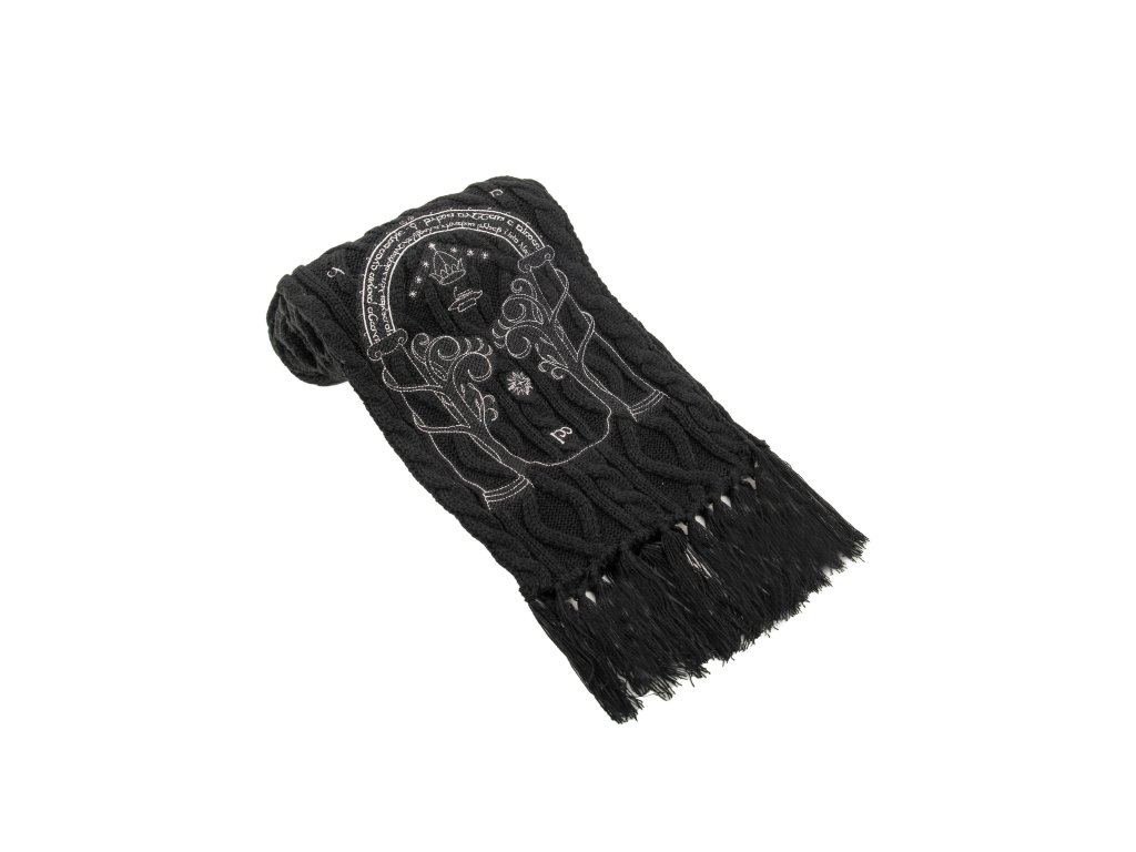 Stylová černá šála inspirovaná legendární branou do Morie z filmové trilogie Pán prstenů. Vyrobená z měkkého a hřejivého materiálu, poskytuje pohodlí i při chladném počasí, zatímco detailní potisk elfských run a svítící brány Morie dodává šále elegantní a mystický vzhled.