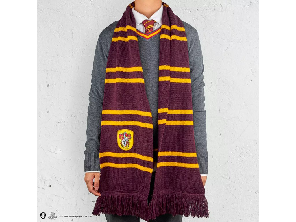 Stylová pruhovaná šála ve stylu nebelvírské koleje ze školy čar a kouzel v Bradavicích.