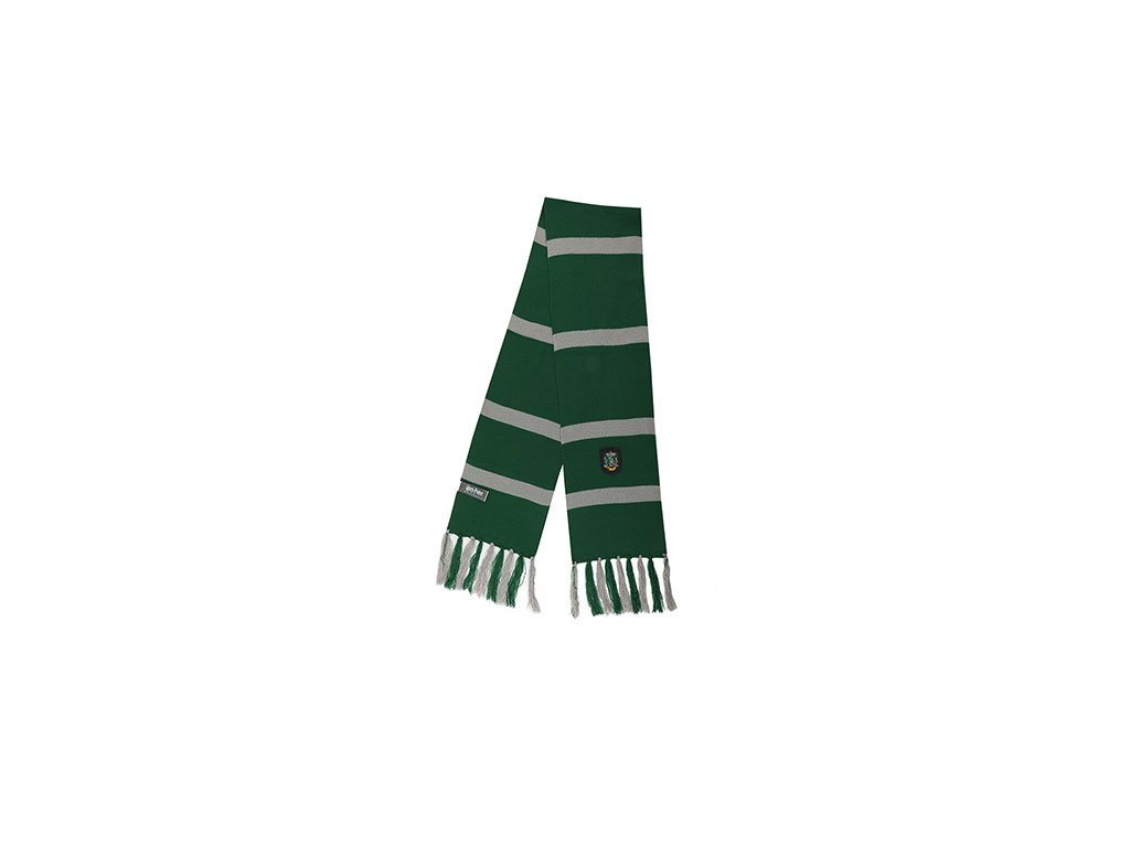 Stylová pruhovaná šála ve stylu zmijozelské koleje ze školy čar a kouzel v Bradavicích.