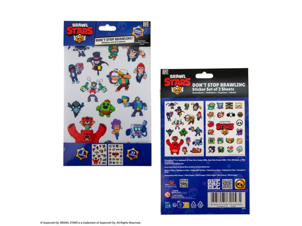 Samolepky Brawl Stars představují tematickou sadu určenou fanouškům populární hry Brawl Stars, která obsahuje dva samostatné archy s celkem 37 různými motivy. Na samolepkách jsou vyobrazeny různé postavy a symboly ze hry, které jsou zpracovány v živých a výrazných barvách, což je činí velmi atraktivními pro děti i sběratele. Každý motiv je detailně vyveden a snadno rozpoznatelný, což umožňuje autentické ozdobení různých předmětů.Doplňkové parametry