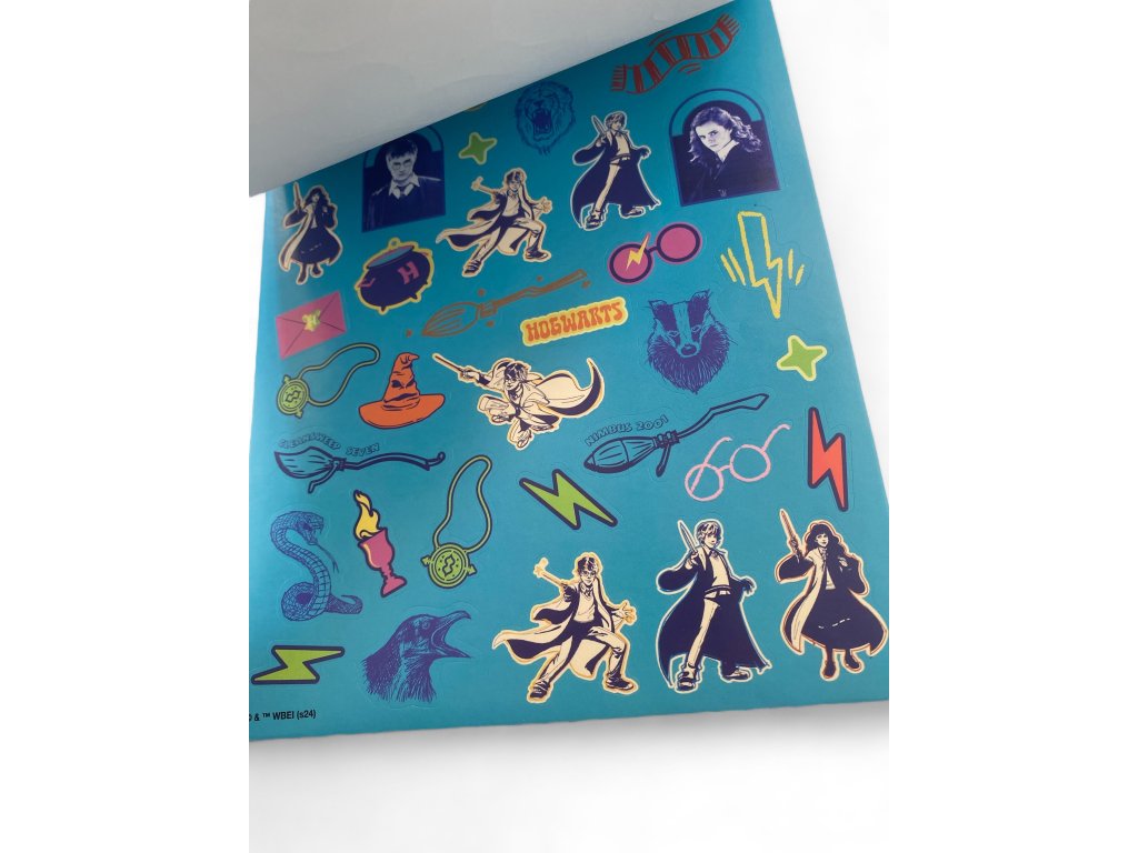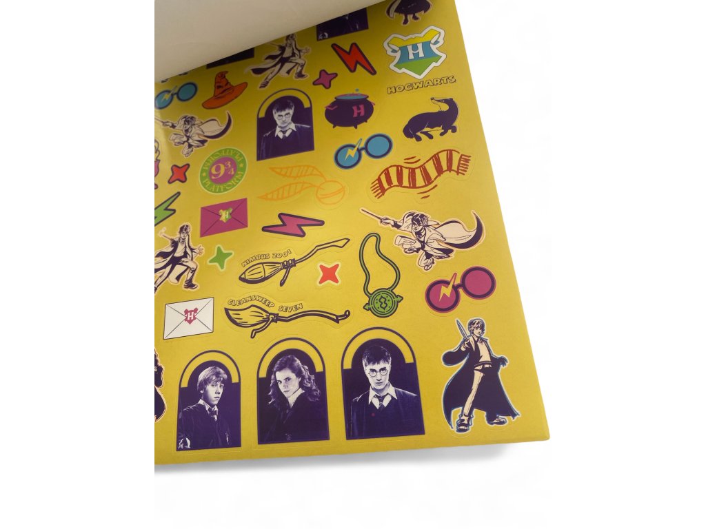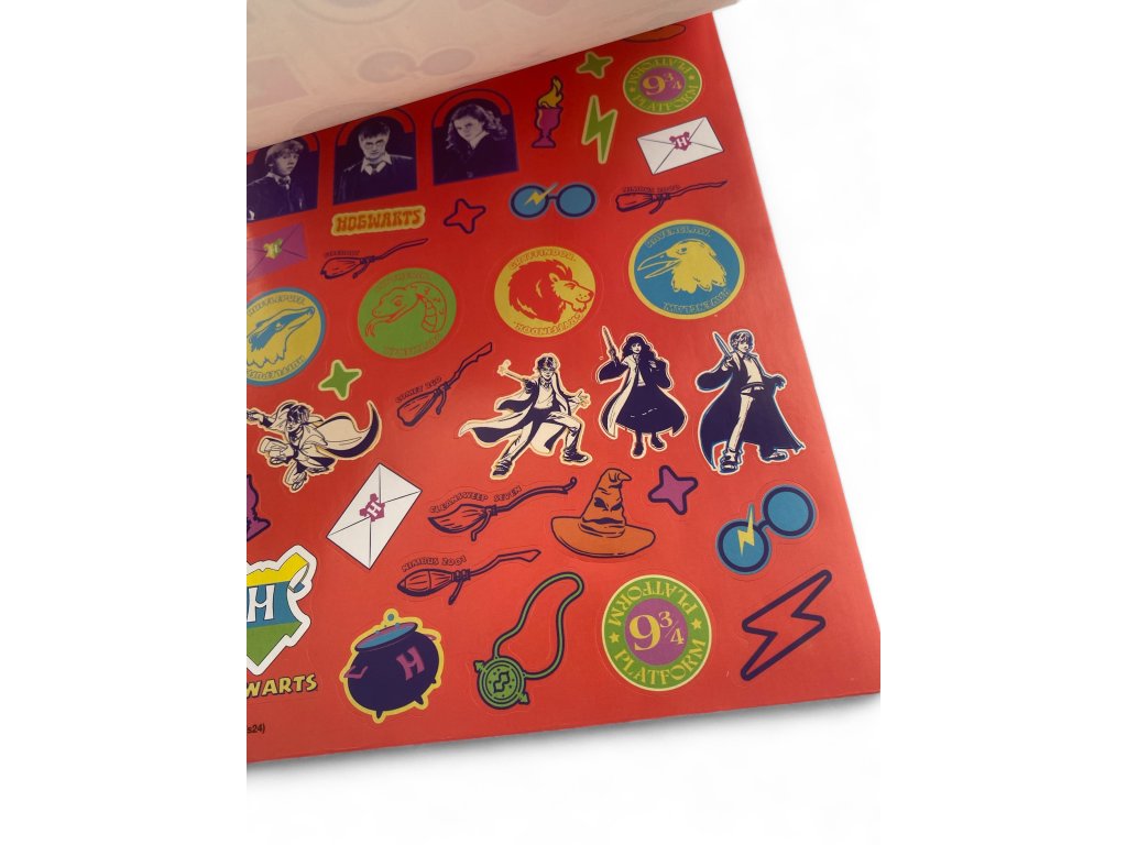 Sešit formátu A5 obsahuje přes 500 kusů menších i větších barevných nálepek v designu kouzelnického světa Harryho Pottera.