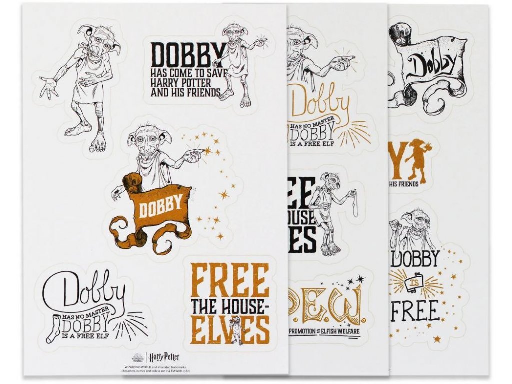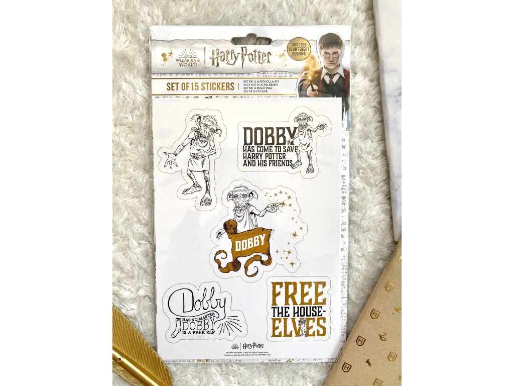 Set obsahuje 3 archy nálepek s motivem oblíbené postavičky kouzelnického světa Harryho Pottera - domácího skřítka Dobbyho.