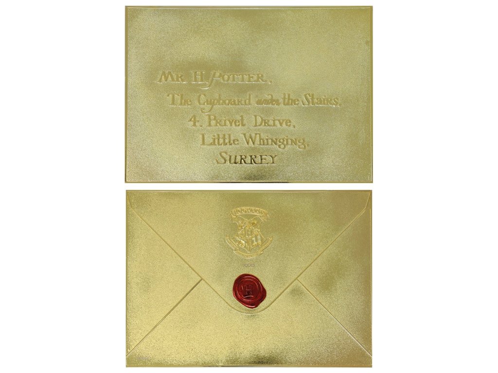 - 24-karátový pozlacený přijímací dopis z Bradavic adresovaný Harry Potterovi