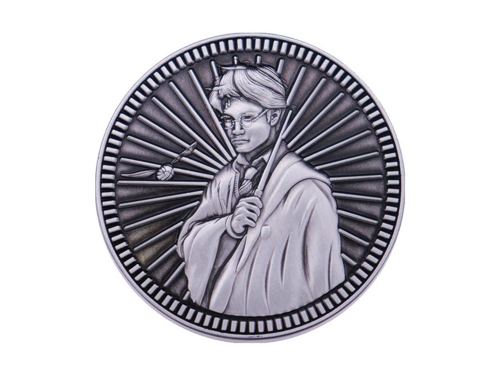 Sběratelská mince ve stříbrné barvě, na které je vyobrazen samotný Harry Potter, z druhé strany je pak k vidění Škola čar a kouzel v Bradavicích.