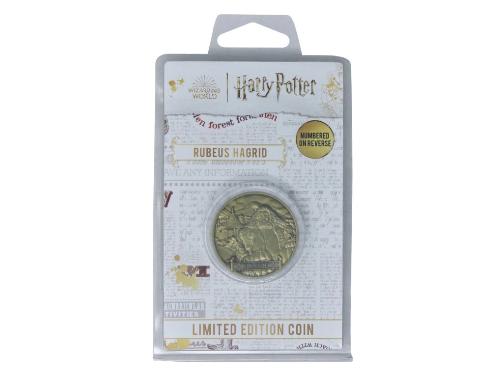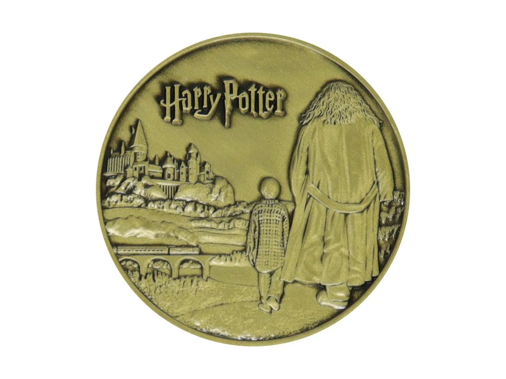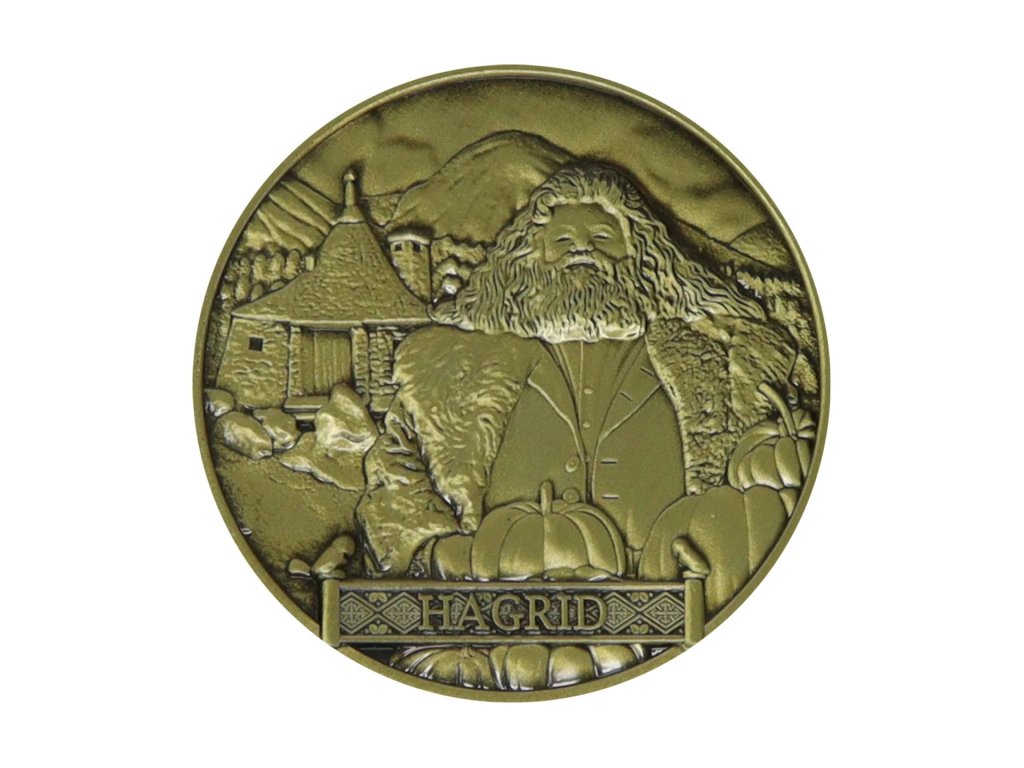Sběratelská mince ve zlaté barvě, na které je vyobrazen bradavický školník Rubeus Hagrid, na druhé straně je pak k vidění společně s Harrym Potterem, kráčející směrem k Bradavicím.