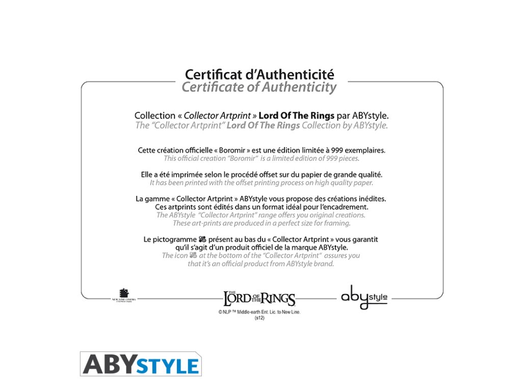 Sběratelský plakát Boromira v limitované edici 999 kusů. Vytištěn na vysoce kvalitním papíře o rozměrech 40 x 50 cm, ideální pro rámování. Balení obsahuje ochranný plastový obal a karton. Originální portrét z Pána prstenů.Doplňkové parametry