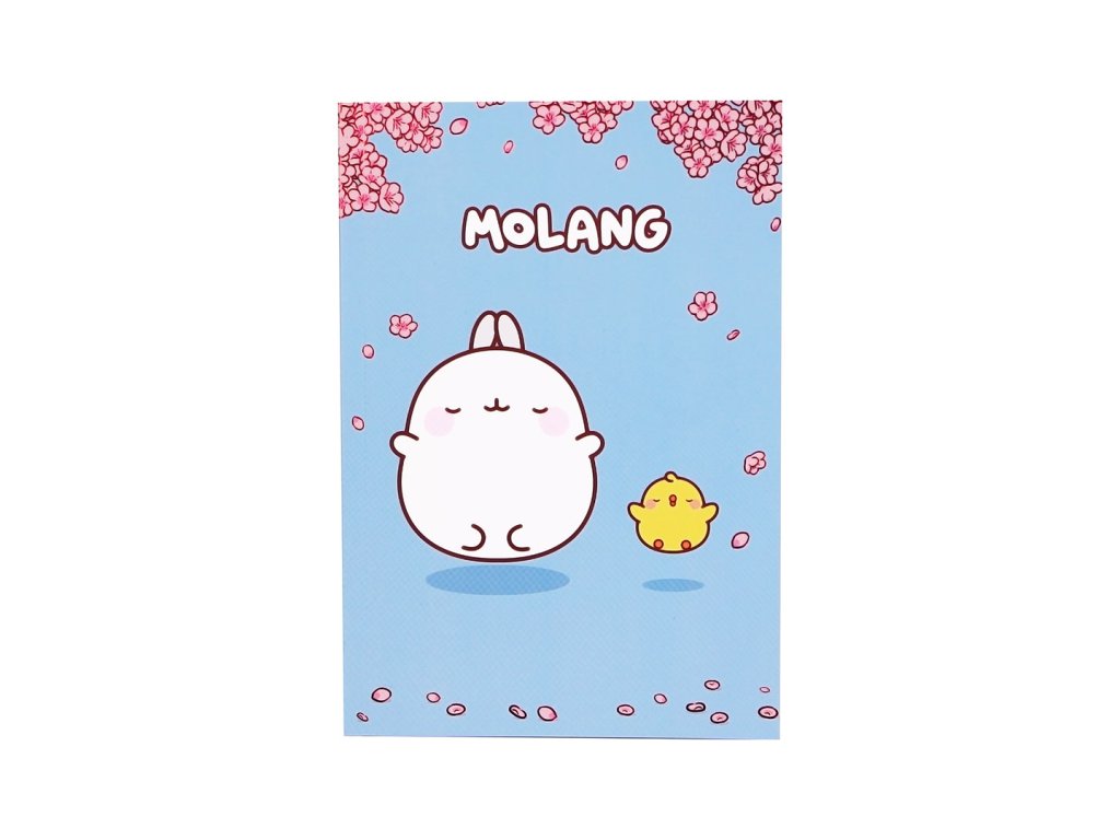 Sešit Zen Molang je perfektní pro všechny fanoušky kawaii. Roztomilý design zobrazuje Molanga a jeho kamaráda Piu Piu v klidném prostředí na modrém pozadí s jemně padajícími růžovými květy třešní.