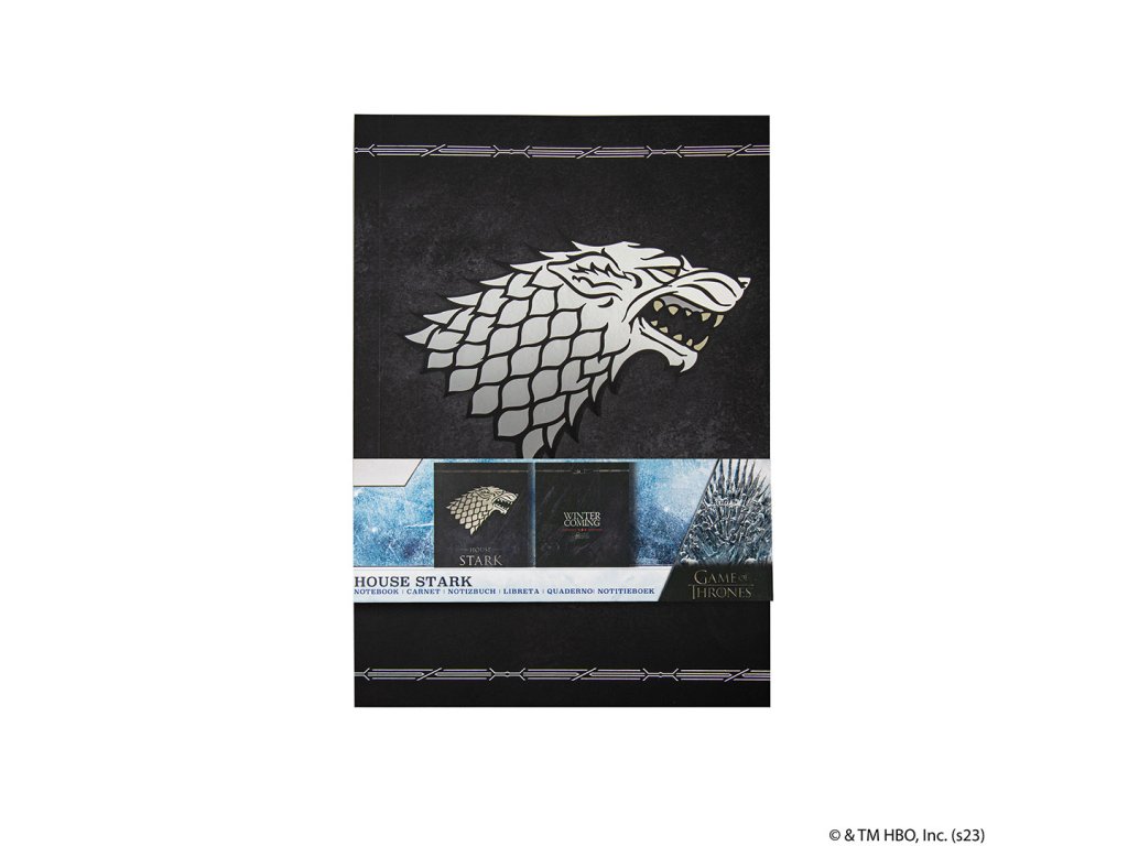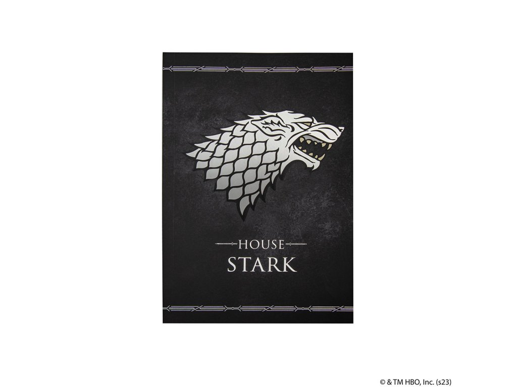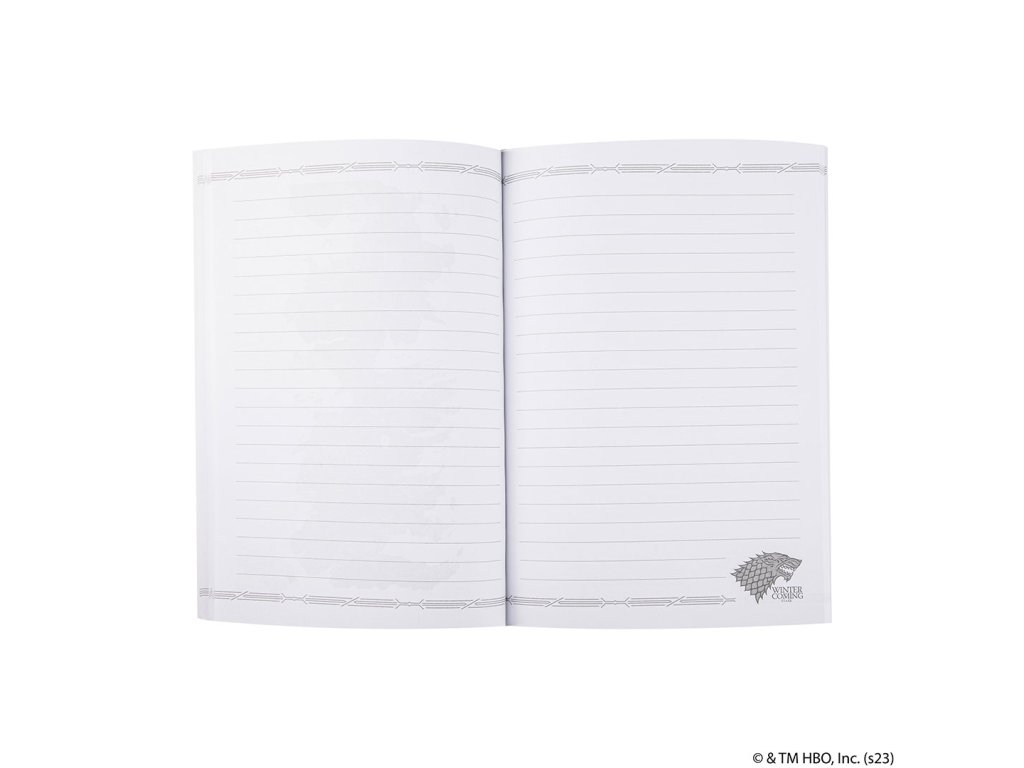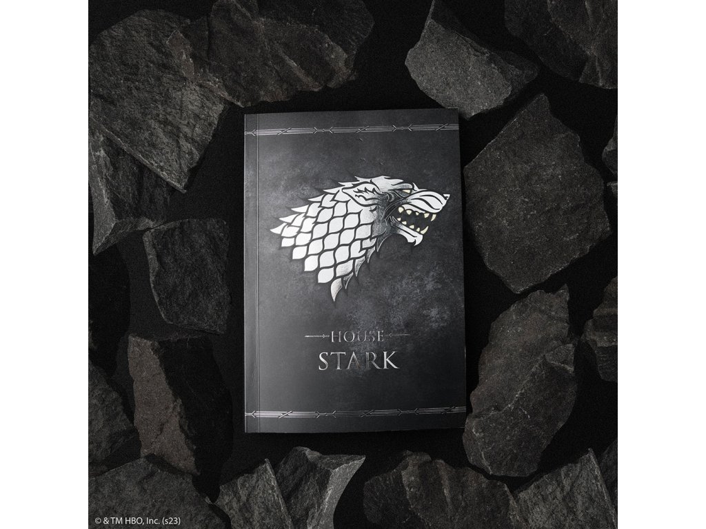 Sešit s měkkými deskami je ideální pro fanoušky Hry o trůny a zdobí jej stříbrný erb rodu Starků. Linkované stránky poskytují dostatek prostoru pro vaše poznámky, nápady nebo kresby a činí zápisník praktickým doplňkem.Doplňkové parametry