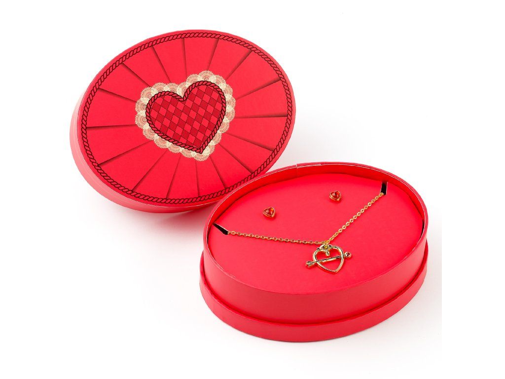 Set obsahuje jemný náhrdelník ve tvaru srdce, který je zdoben Amorovým šípem a třpytivým detailem z umělého krystalu. K němu ladí elegantní puzetové náušnice ve stejném tvaru srdce. Celý set je dodáván ve stylové oválné dárkové krabičce, což z něj dělá ideální dárek pro jakoukoli příležitost – zejména pro Valentýna, kdy chcete někomu ukázat, že vás doslova očaroval.