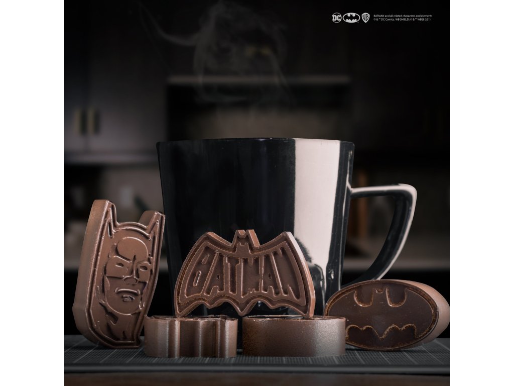 Pokud máš chuť na studený nápoj nebo sladkou čokoládu, teď si můžeš vytvořit ledové kostky nebo čokoládky ve tvaru svého oblíbeného superhrdiny. Forma obsahuje sedm různých motivů, ale všechny jsou věnované Batmanovi.
