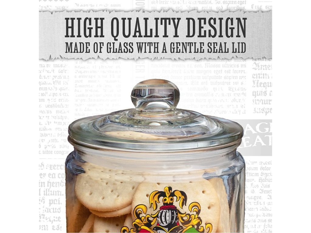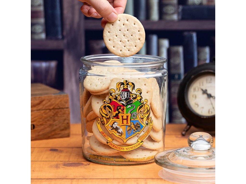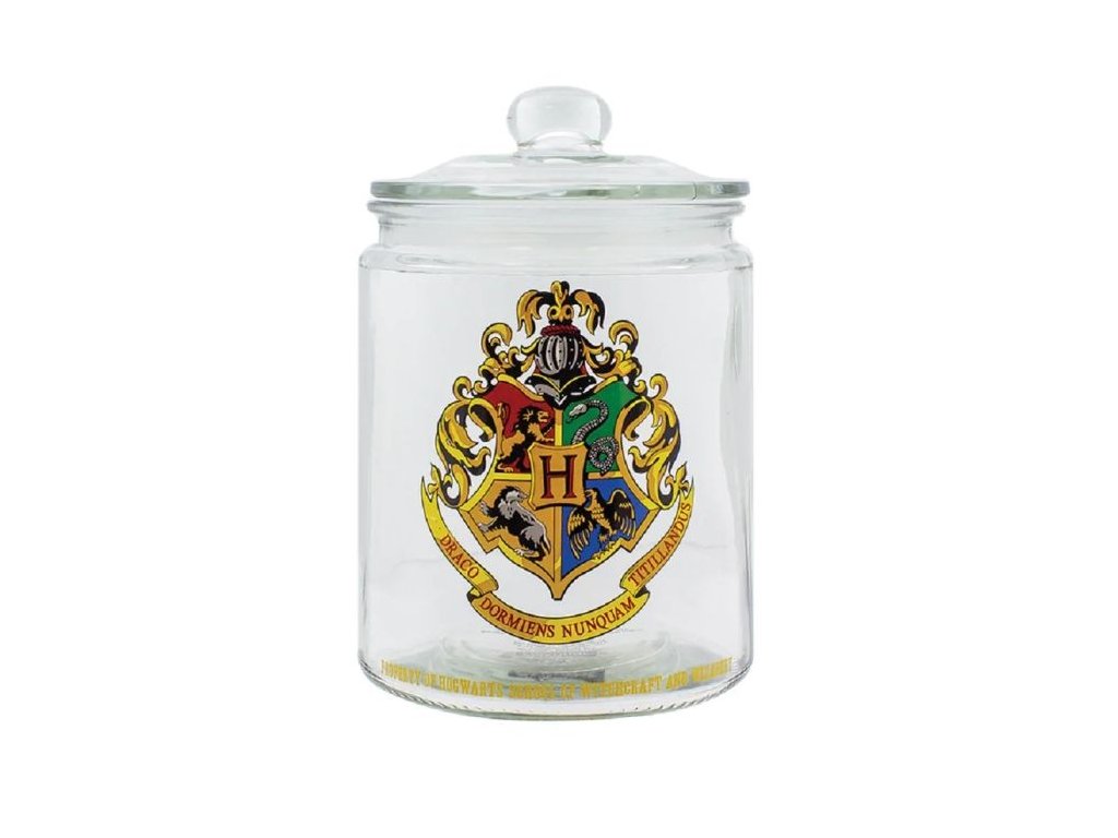 Skleněná nádoba na sladkosti nebo jen tak na dekoraci interiéru, s motivem bradavického erbu.