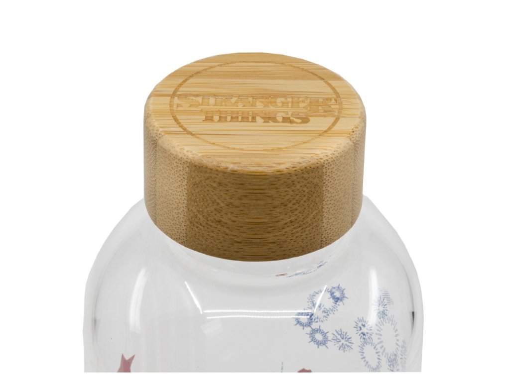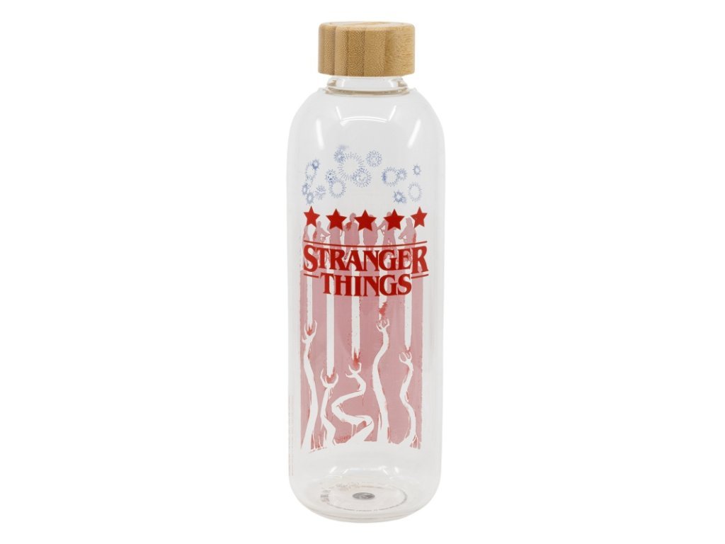 Luxusní skleněná láhev na pití STRANGER THINGS s netekoucím nerezovým uzávěrem. Láhev je vyrobena z odlehčeného brosilikátového skla, které je velmi odolné vůči nárazu, nepřijímá žádné vůně ani chutě a snadno se udržuje. Láhev je vhodná do školy, do fitka, na výlety i během cestování.Doplňkové parametry