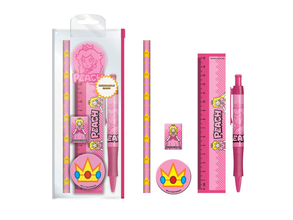 Malý školní set v plastovém pouzdru s motivem princezny Peach. Balení obsahuje propisku, tužku, ořezávátko, gumu a pravítko 15 cm.Doplňkové parametry