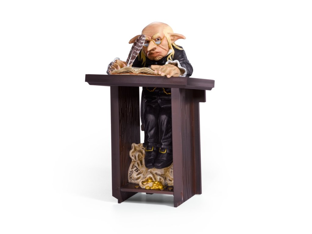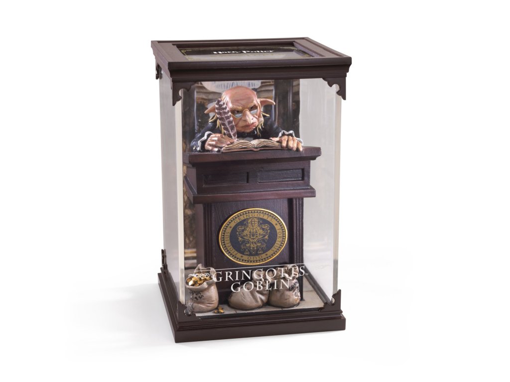 Sběratelská figurka v průhledné vitríně - skřet z Gringottovy banky. Jde o finanční instituci ve světě Harryho Pottera. Skřeti, kteří zde pracují, jsou hrdí na svoji rasu a nemají rádi kouzelníky.