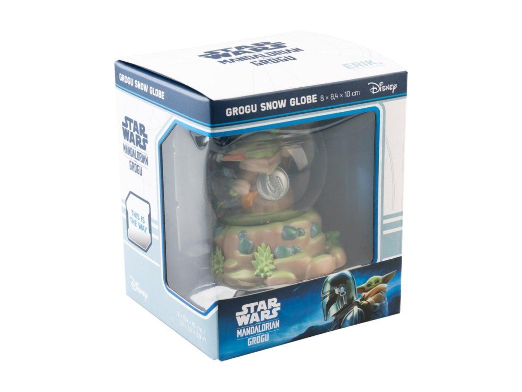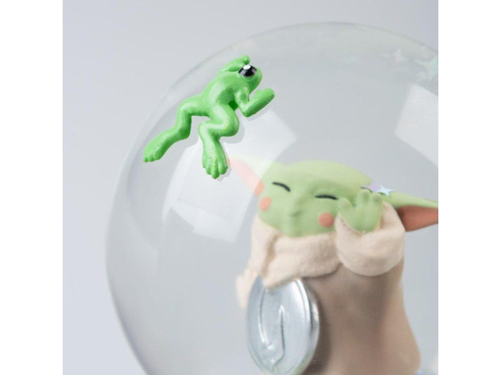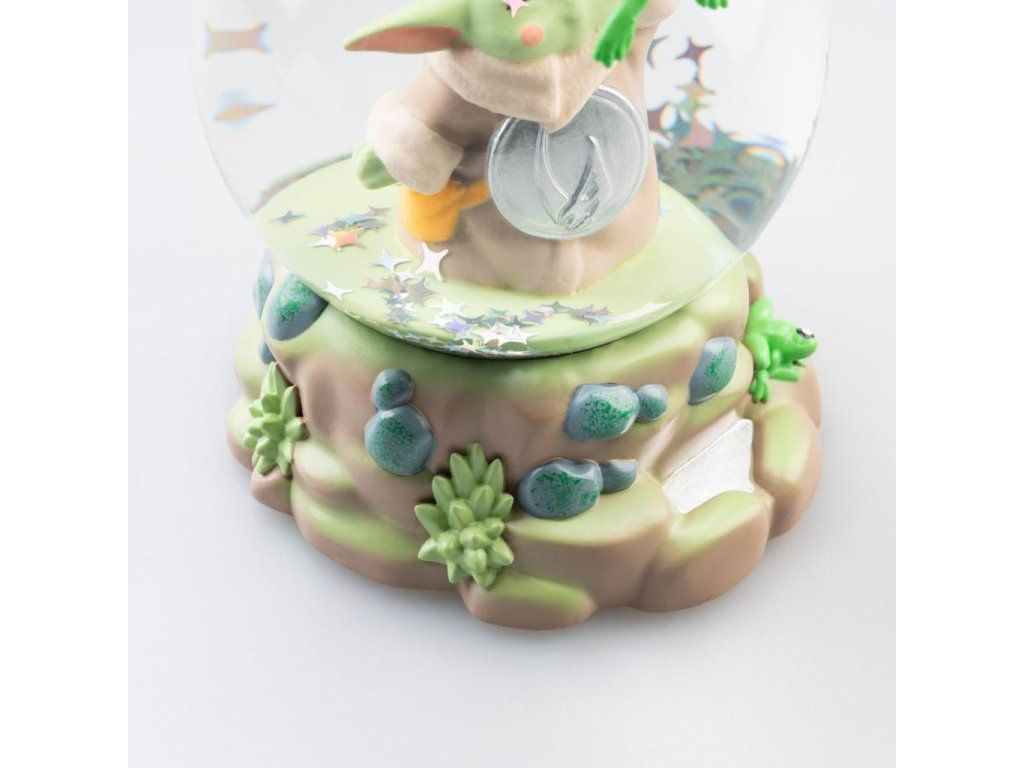 Stačí jemně zatřást a kolem Grogu se rozvíří třpytivé částice, které vytvoří magickou atmosféru. Po chvíli se sníh pomalu usadí zpět na dno, připravený na další kouzelný okamžik.