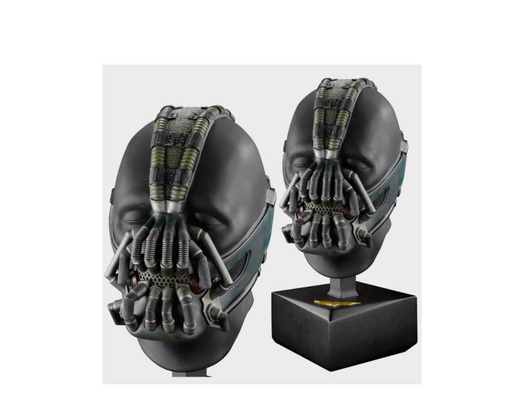 Propracovaná replika masky Banea (cca 40,5 cm), která stojí na podstavci s logem Batmana, dokonale zachycuje hrozbu Batmanova nepřítele z filmu Temný rytíř povstal (2012). Maska je pouze dekorační a není nositelná.