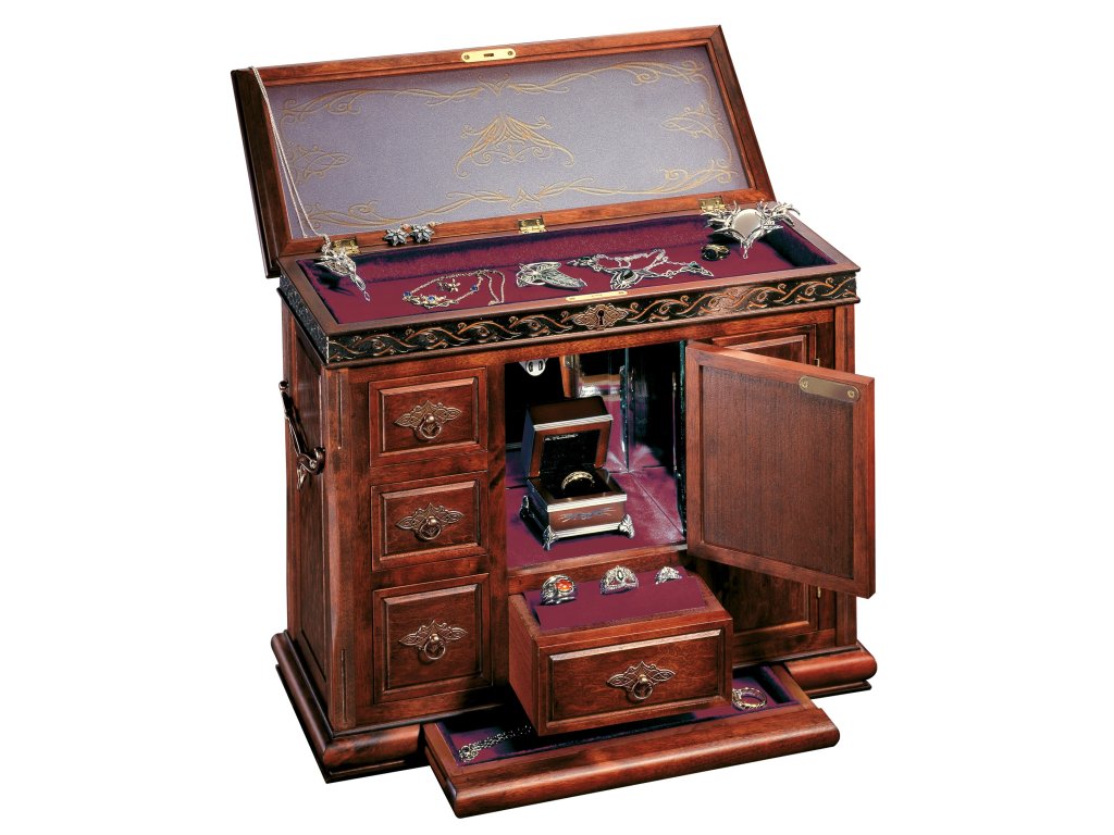 Elegantní šperkovnice inspirovaná krásou a estetikou Středozemě z trilogie Pán prstenů je ideálním místem pro uchování vašich nejcennějších pokladů. Klasický hnědý design s jemnými dekorativními prvky připomíná elfské i gondorské motivy, které symbolizují řemeslnou zručnost národů Středozemě.