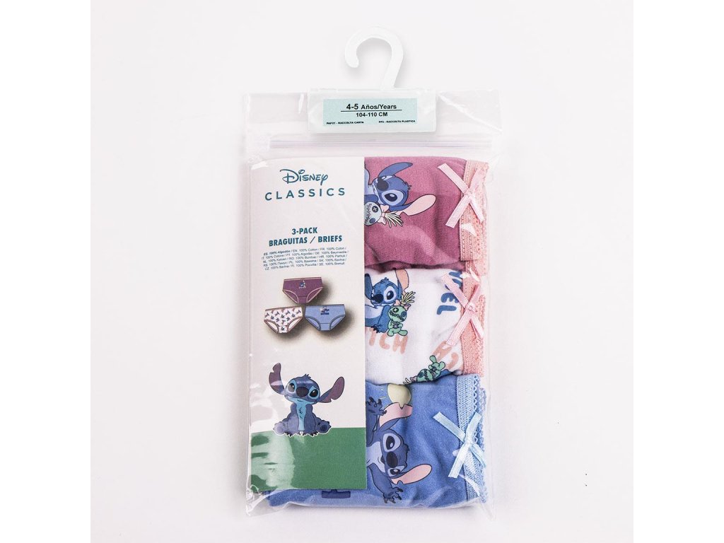 Dívčí sada spodního prádla s motivem Stitche obsahuje tři kusy vyrobených z měkkého a pohodlného materiálu, který zajišťuje příjemné nošení.Doplňkové parametry