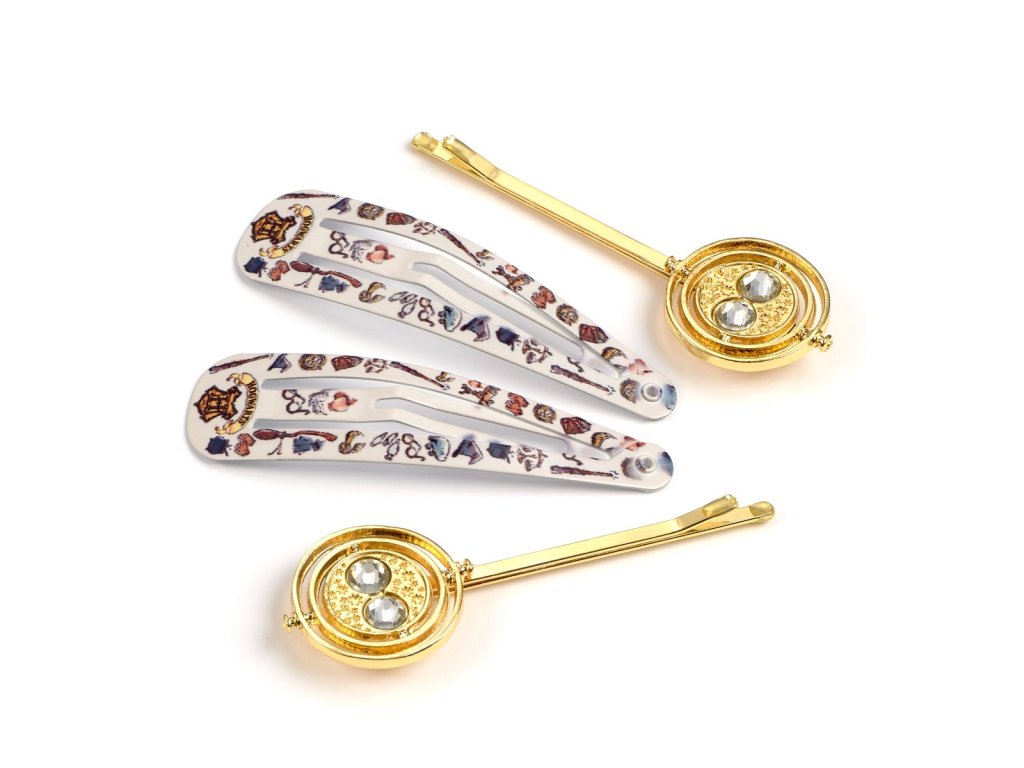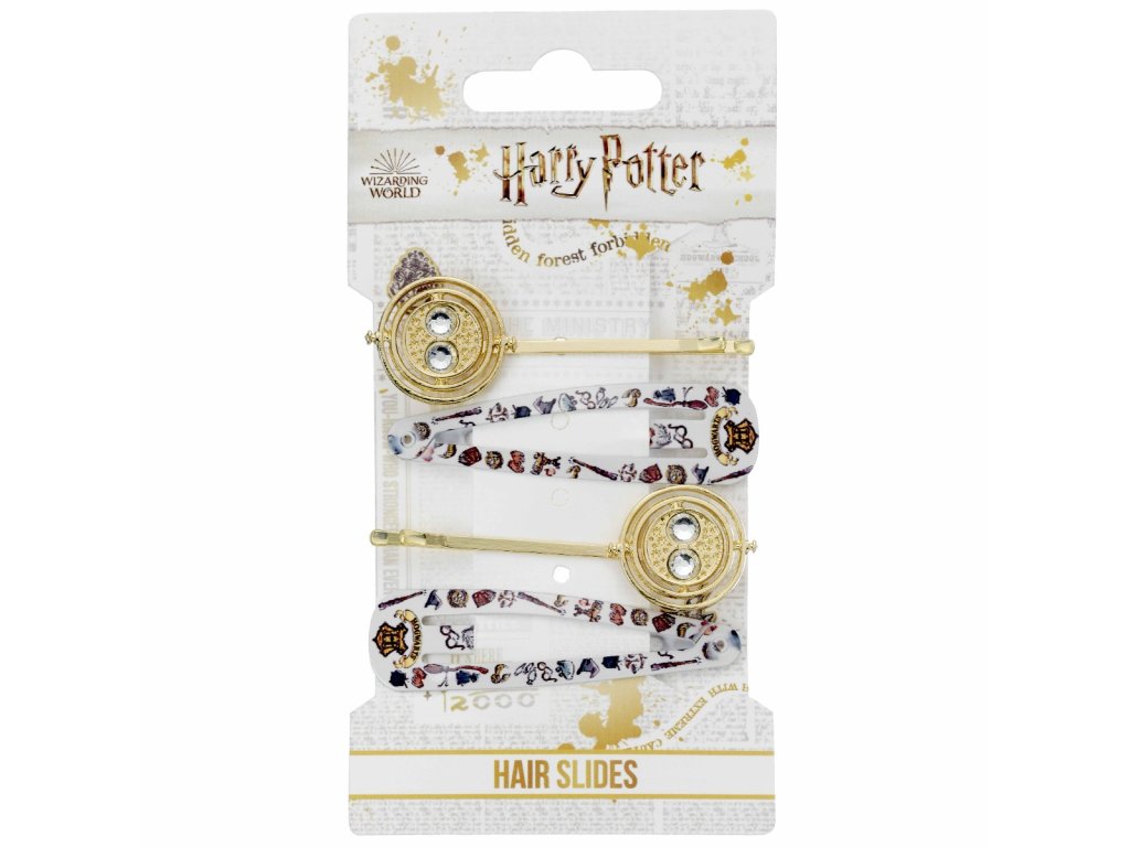 Balení obsahuje dvě zlaté sponky s Obracečem času a dvě klasické vzorované sponky s motivy Harry Potter.