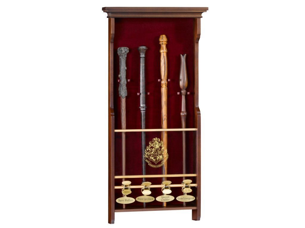 Dřevěný displej na pověšení na zeď, který pojme až 4 kouzelnické hůlky ze světa Harryho Pottera.