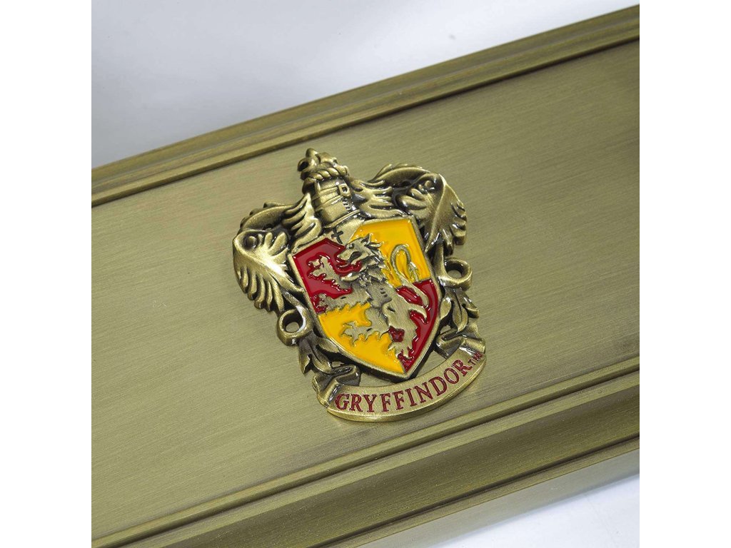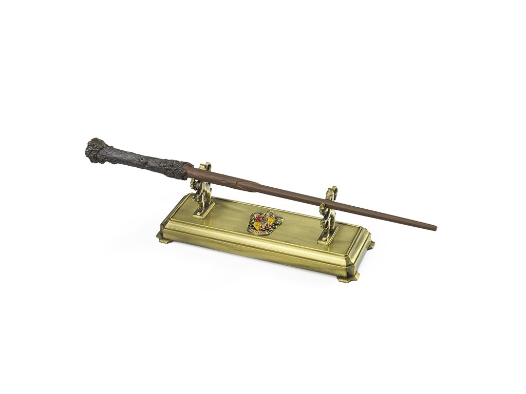 Stylový stojan na vystavení kouzelnické hůlky ze světa Harryho Pottera. Ve zlaté barvě s emblémy bradavické školní koleje Nebelvír.
