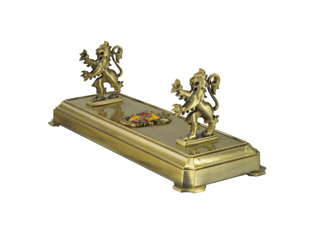 Hůlku drží kolejní maskoti - lvi.