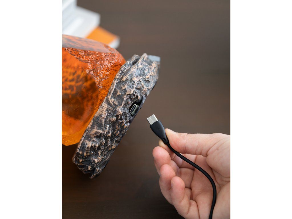Stolní lampička, která obsahuje režim teplého osvětlení s efektem pohybujícího se plamene ohně, který se ovládá ovládacím tlačítkem umístěným na boku lampy. Napájení je 3 bateriemi AAA 1,5 V (nejsou součástí balení) nebo kabelem USB typu C - vstup 5 V DC 1 A (součástí balení). Rozměry: 32,5 x 14,5 x 7,5 cm. Je vyrobena z ABS a akrylu.
