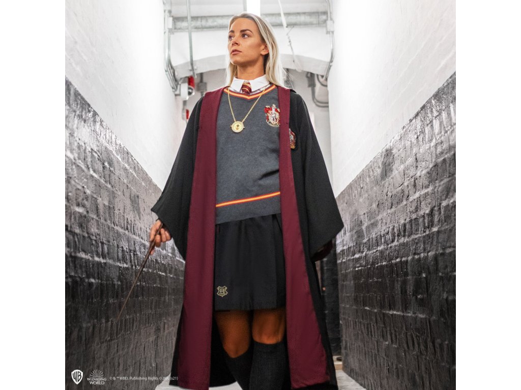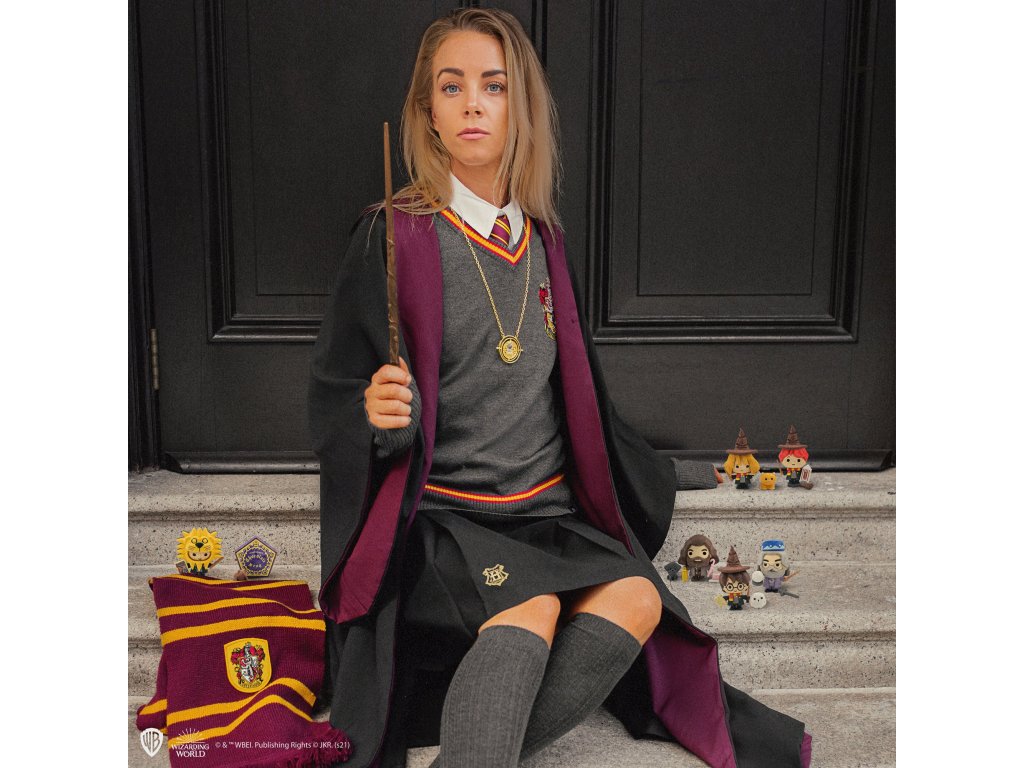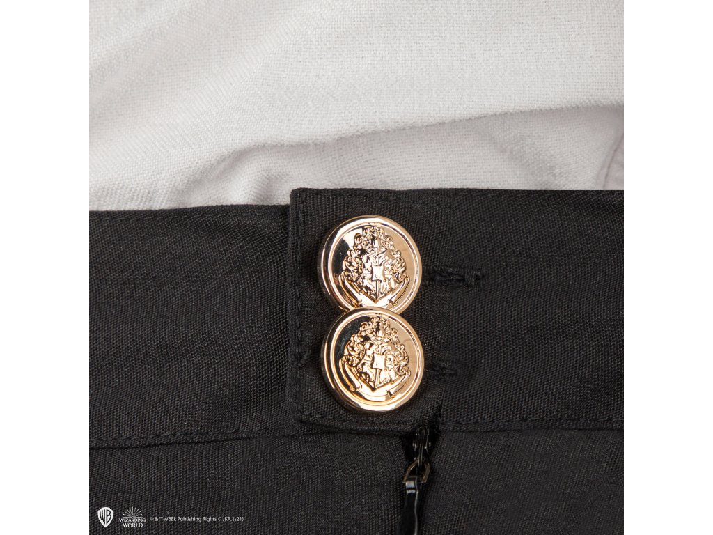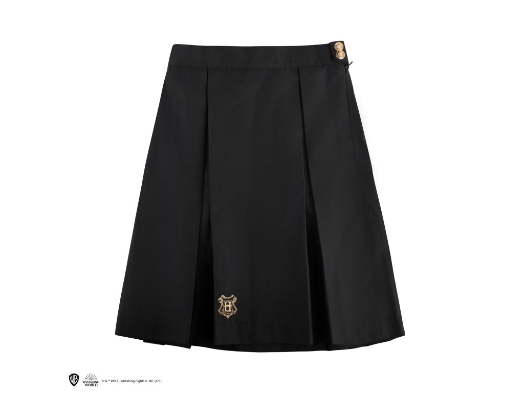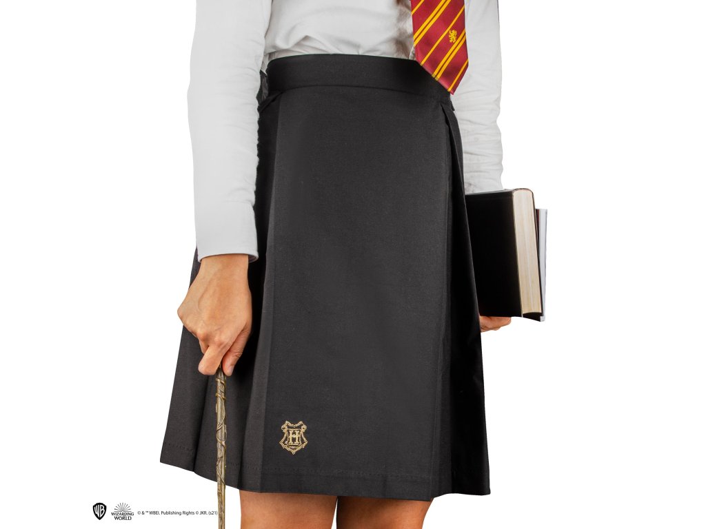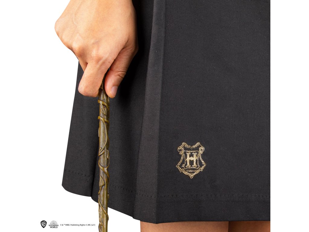Sukně inspirovaná tou, kterou nosí Hermiona Grangerová ve filmech o Harrym Potterovi, vyniká lichotivým střihem a je skvělým doplňkem pro každý cosplay studenta z Bradavic. Perfektně ladí se svetrem i hábitem tvé koleje. Na sukni je vyšit znak Bradavic a její knoflíky nesou jemně gravírovaný erb školy. Ideální způsob, jak s hrdostí ukázat, že patříš do světa čar a kouzel.