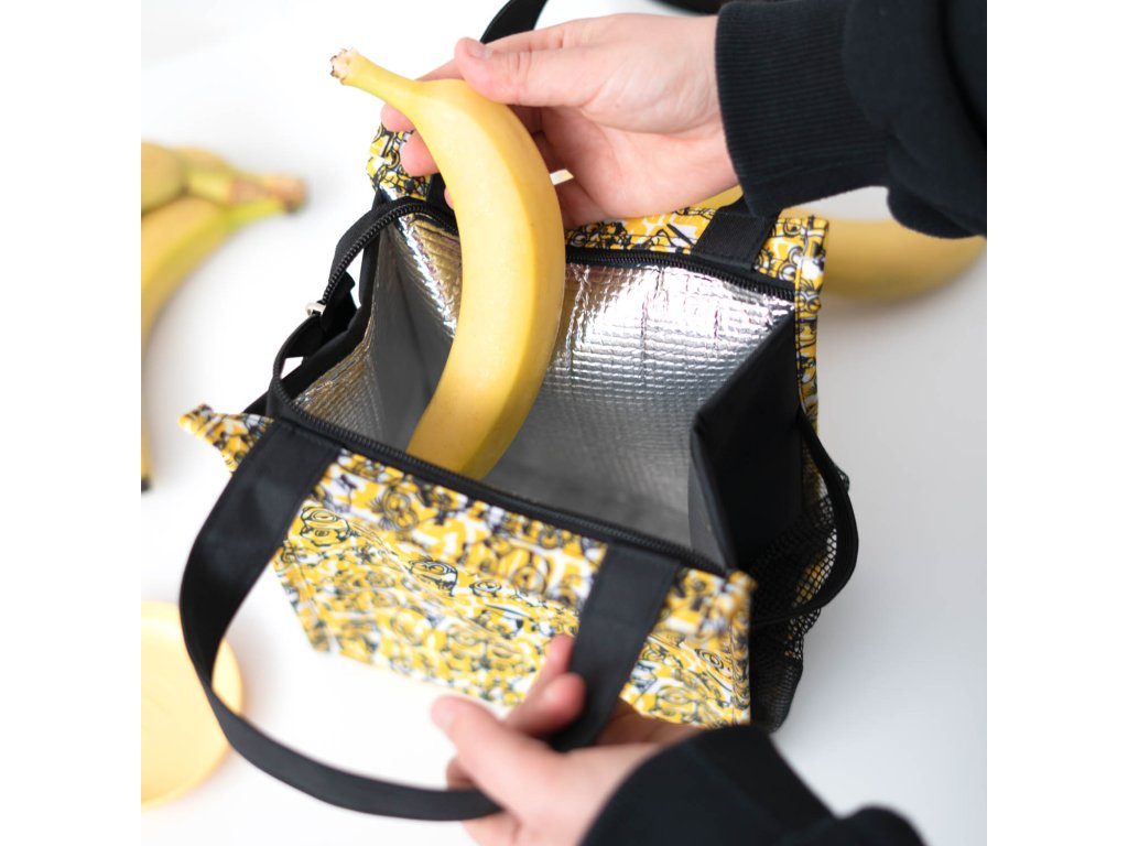 Svačinová taška vyrobená ze 100% polyesteru s hliníkovou vnitřní podšívkou. Rozměry přibližně 20 x 13 x 23 cm. Má všitou boční kapsu, rukojeti a zapínání na zip. Váží 180 g.Doplňkové parametry