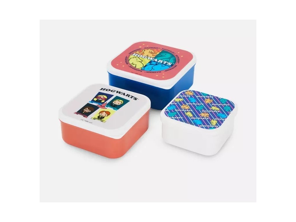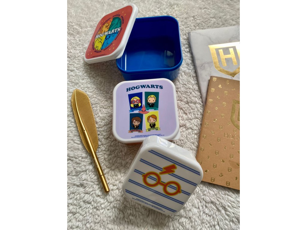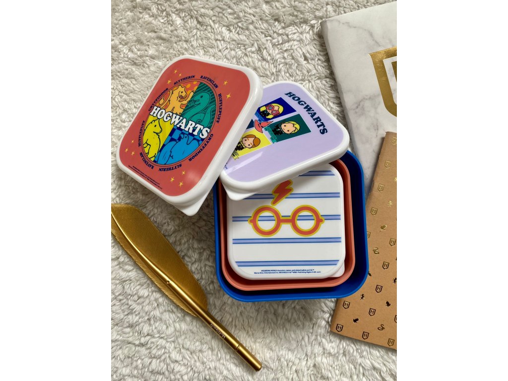Set svačinových krabiček inspirovaný světem kouzel Harryho Pottera. Krabičky jsou vyrobeny z odolného plastu v různých velikostech tak, aby do sebe zapadly a snadno se tak skladovaly. Pro každodenní použití do školy nebo do práce. Každá krabička má na víku potisk s nápisy a motivy inspirovanými světem Harryho Pottera. Sada je ideálním praktickým dárkem pro fanouška této kouzelnické série.