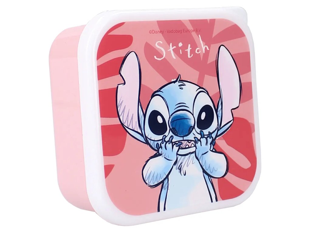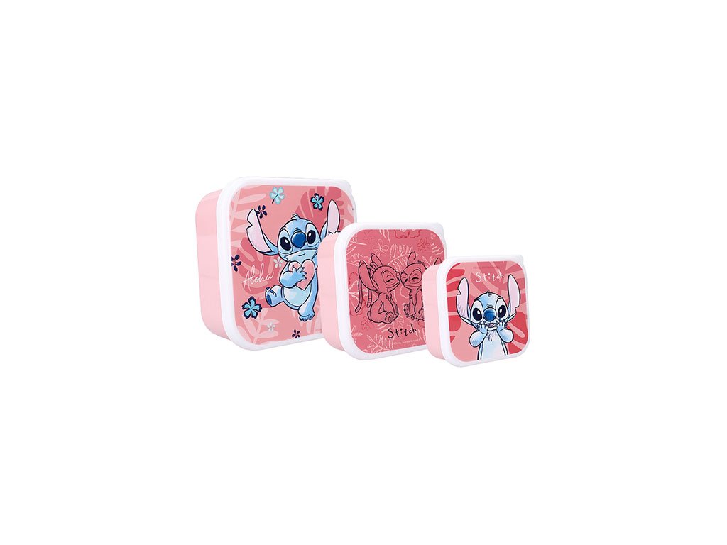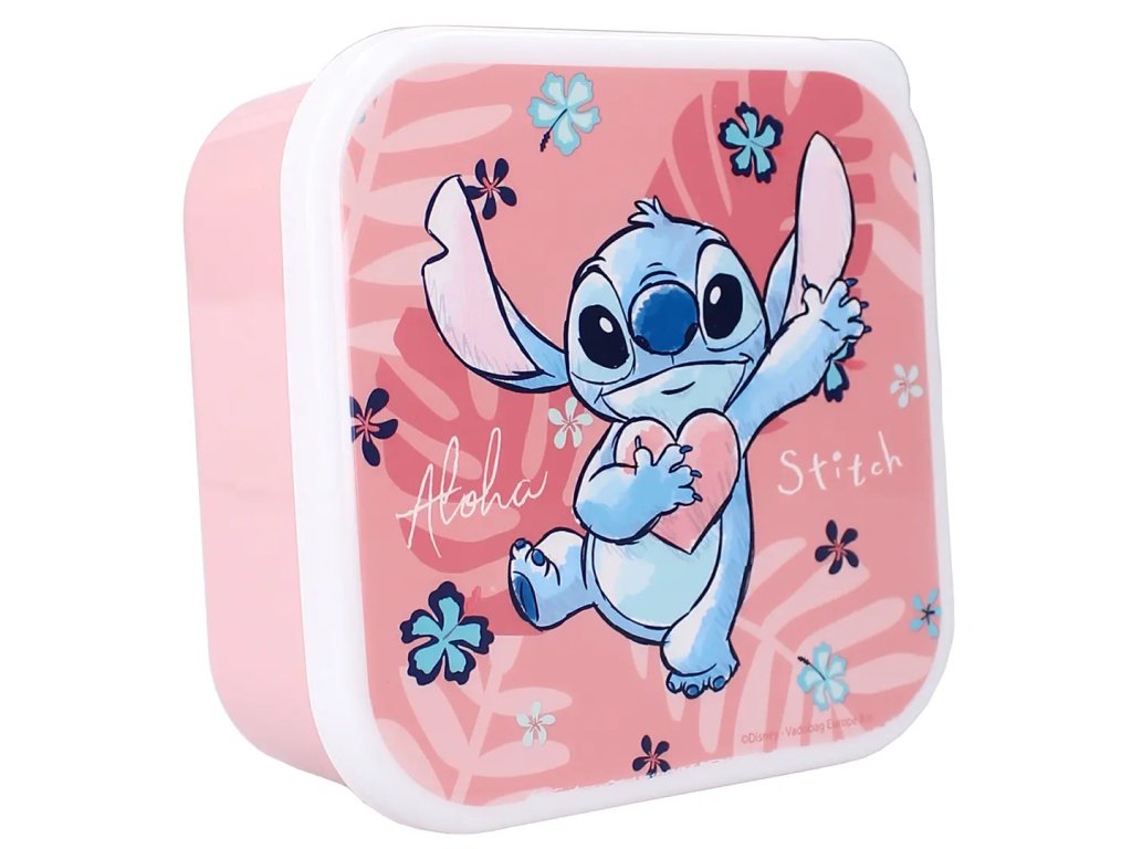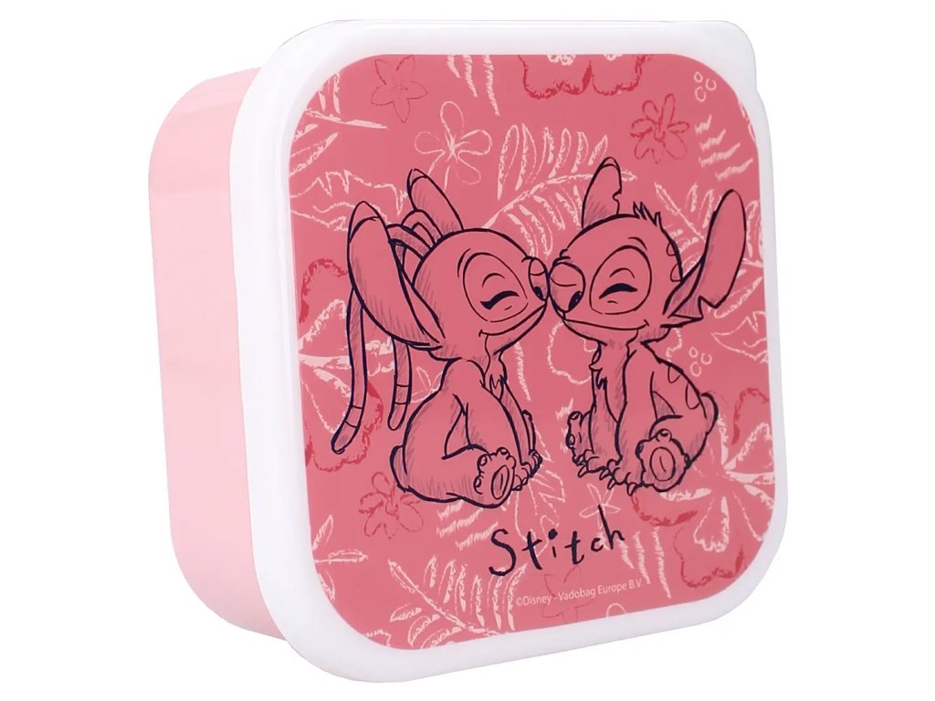 Sada tří boxů různých velikostí s motivem Stitch a Angel je praktickým a stylovým řešením pro každodenní použití. Boxy se snadno skládají do sebe a jsou ideální do školy, do práce i na výlety. Tyto plastové krabičky s obrázky Stitche umožní bezpečně uchovat obědy nebo svačiny.Doplňkové parametry