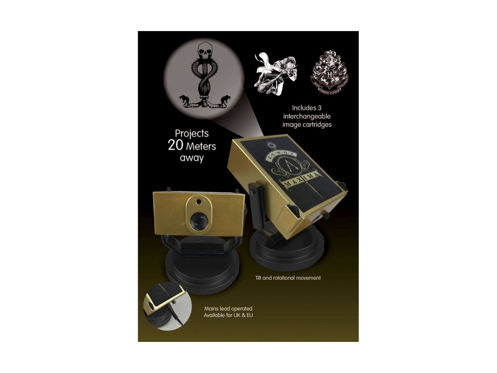 Promítejte kouzelnou atmosféru Harryho Pottera s tímto projektorem Lumos Maxima třeba u vás doma! Součástí je trojice vyměnitelných obrázků - Harry Potter na koštěti, erb Bradavic a symbol Znamení zla. Dávejte však pozor, aby vás nepřišli navštívit Smrtijedi!