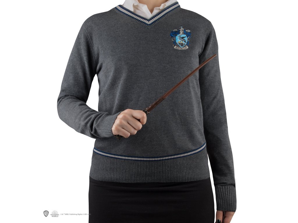 Havraspárský svetr, jaký jste viděli ve filmové sérii Harry Potter. Vyjádři hrdost na svou kolej s tímto svetrem do „V“ a jeho kvalitním vyšitým erbem Havraspáru. Vyrobený z měkké pleteniny, snadno ho sladíš s běžným oblečením nebo ho můžeš nosit jako součást plné havraspárské uniformy.