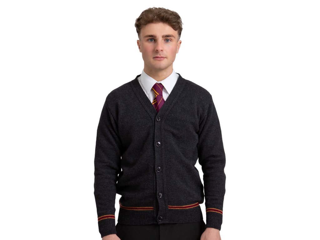Elegantní šedý svetr s kolejními barvami Nebelvíru je ideální volbou pro každodenní kouzelnický outfit. Oproti klasickému svetru má tento model praktické zapínání na knoflíky.Doplňkové parametry