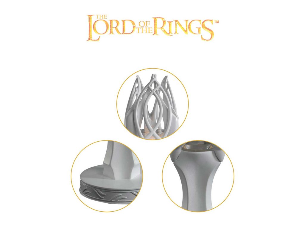 Tento elegantní držák na svíčku je inspirován holí Gandalfa Bílého, jak ji znáte z filmové trilogie Pán prstenů. Každý detail byl pečlivě ztvárněn, aby vystihl vznešenost a moc jednoho z největších čarodějů Středozemě.