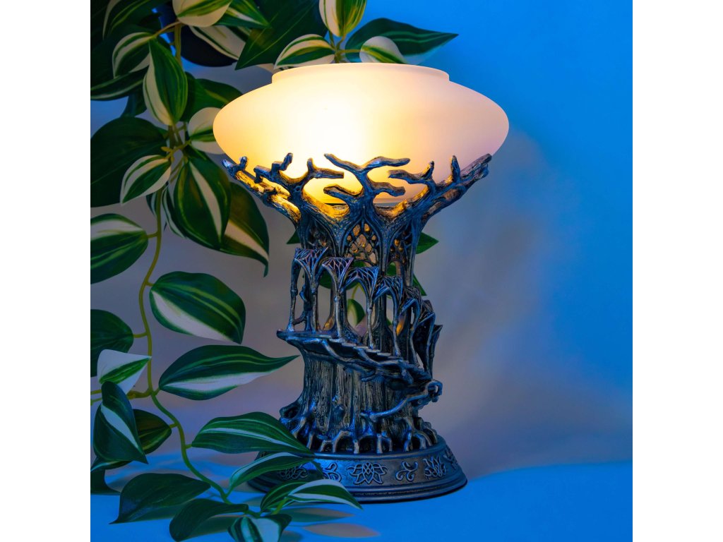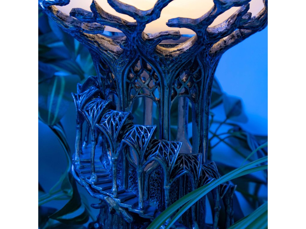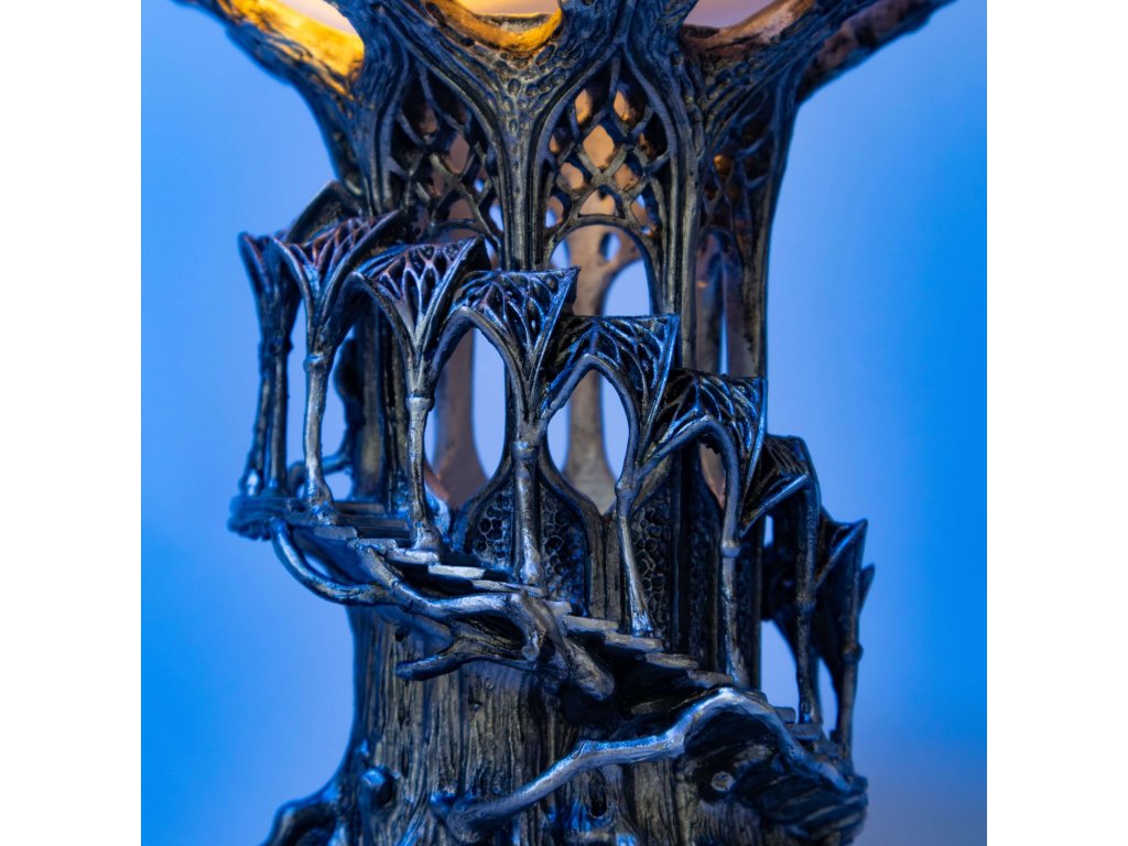 Tento elegantní svícen inspirovaný říší Lothlórien zachycuje jemnou krásu elfské architektury ze světa Pána prstenů. Detailně zpracované spirálové schodiště a klenuté oblouky jsou vyrobeny z kvalitní pryskyřice a připomínají nadčasový styl elfského království Galadriel.