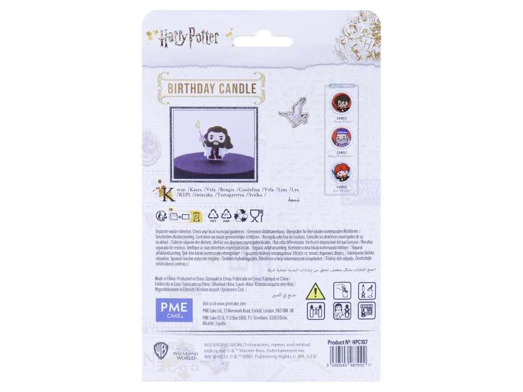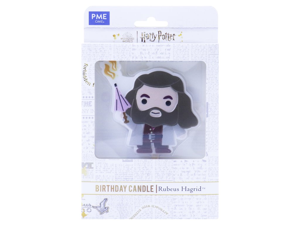 Balení obsahuje: 1 x dortovou svíčku vyrobenou s parafínovým voskem v designu Rubeuse Hagrida. Knot je umístěn v hůlce, aby nedošlo k popálení obličeje postavy.