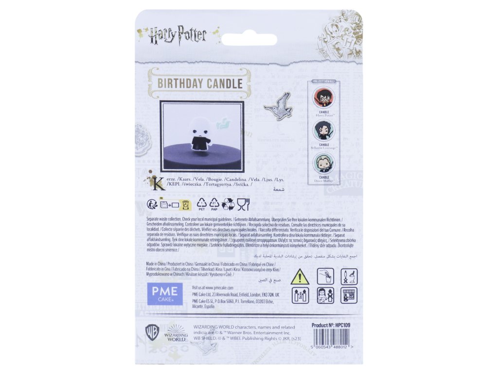 Balení obsahuje: 1 x dortovou svíčku vyrobenou s parafínovým voskem v designu Lorda Voldemorta. Knot je umístěn v hůlce, aby nedošlo k popálení obličeje postavy.