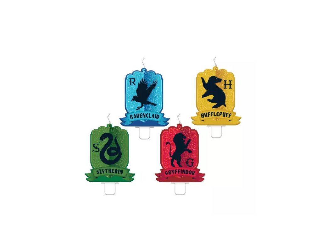Balení obsahuje 4 svíčky reprezentující jednotlivé bradavické koleje - Nebelvír, Zmijozel, Havraspár a Mrzimor (2,2 x 3 cm).