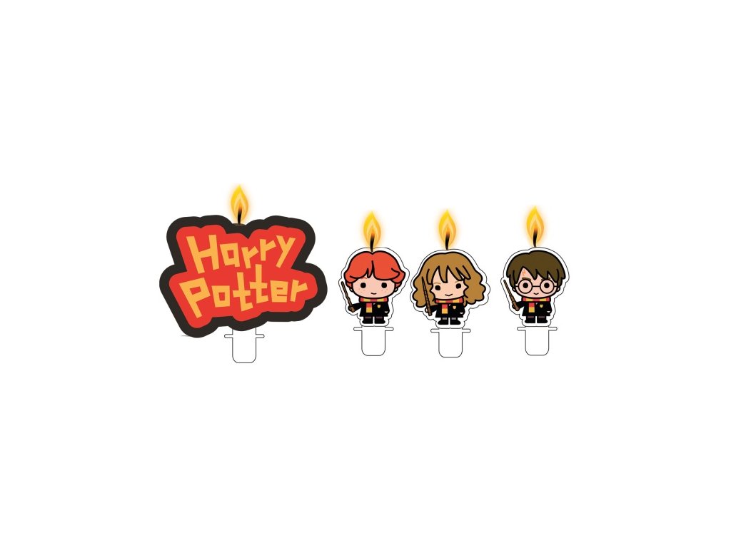 Balení obsahuje 4 svíčky - Harry, Ron, Hermiona (4 cm) a nápis Harry Potter (8 cm).